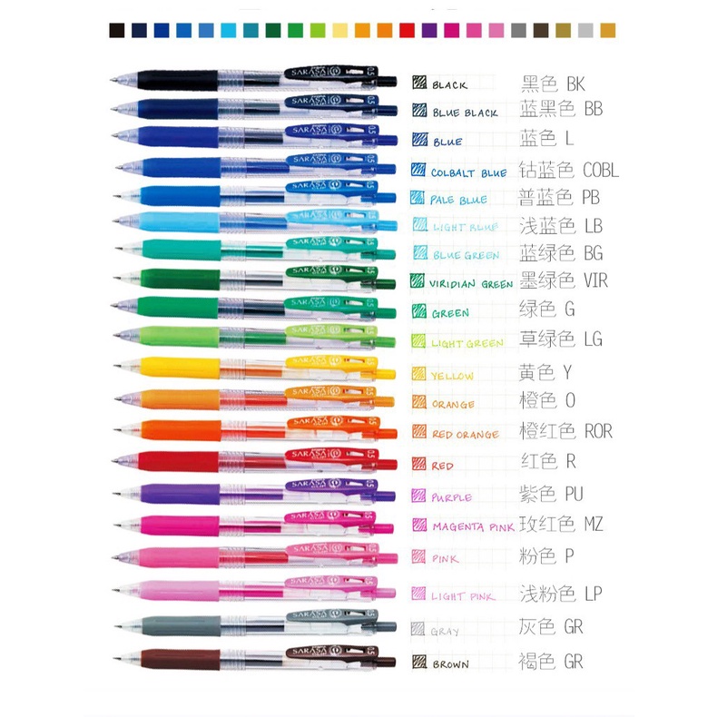... 📌 ใหม่!! Milky Color สีใหม่ล่าสุดจาก Sarasa สีสวยมากกก 📌 มีทั้งหมด 8 สี ใช้เขียนกระดาษสีดำได้ สวยมากๆๆ 🎌 สินค้านำเข้าจากประเทศญี่ปุ่น 🌈 มีสีให้เลือกมากถึง 20 สี ⭐️ ขึ้นชื่อว่าปากกาญี่ปุ่น เขียนลื่นมาก ⭐️ หัวปากกาทำจากสแตนเลส คุณภาพดีเยียม ⭐️ ด้ามจับมี Rubber Grip ทำให้จับถนัดและนุ่มมือ 📌 น้ำหมึกคมชัด สีสันสดใส ไหลสม่ำเสมอ ไม่ขาดตอน 📌 เขียนจนหมึกจะหมดแท่งก็ยังไม่จาง คงคุณภาพงานเขียน 📌 หัวปากกานุ่ม ไม่มีเสียงรบกวนขณะขีด 👉 มี clip สำหรับเสียบกับเสื้อ แขวนได้ ใช้สะดวก 👉 การันตีการเขียน เส้นคมชัด หมึกเข้มไม่จาง โดยที่หมึกไม่เยิ้มหมีกสีตามด้าม มีให้เลือกถึง 20 สี 1. Black - BK - สีดำ 2. Gray - GR - สีเทา 3. Brown - BR - สีน้ำตาล 4. Red - R - สีแดง 5. Red orange - RO - สีแดงส้ม 6. Orange - OR- สีส้ม 7 Yellow - Y - สีเหลือง 8. Light green - LG - สีเขียวอ่อน 9. Green - G - สีเขียว 10. Viridian green - VG - สีเขียวเข้ม 11. Blue green - BG - สีฟ้าเขียว 12. Light blue - LB - สีฟ้าอ่อน 13. Pale blue - PB - สีฟ้า 14. Cobalt blue - COBL - สีน้ำเงินอ่อน 15. Blue - B - สีน้ำเงิน 16. Blue black - BB - สีน้ำเงินเข้ม 17. Purple - PU - สีม่วง 18. Magenta pink - MP - สีชมพูเข้ม 19. Pink - P - สีชมพู 20. Light pink - LP - สีชมพูอ่อน