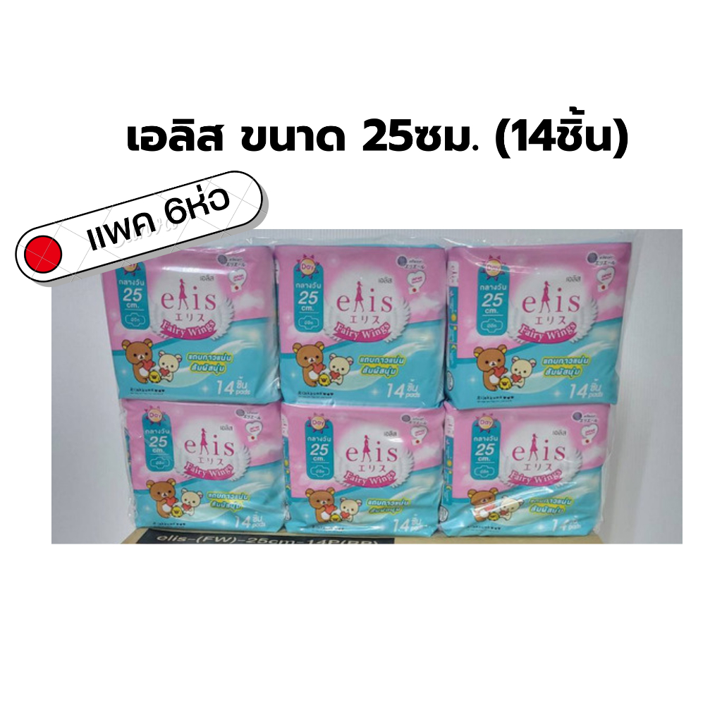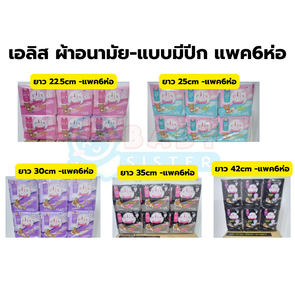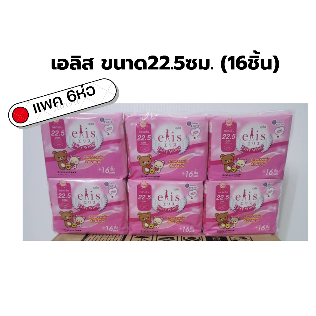 (แพค6ห่อ) เอลิส ผ้าอนามัย รุ่นFairy Wings -มีปีก แพค6ห่อ (ความยาว22.5 - 42เซนติเมตร)