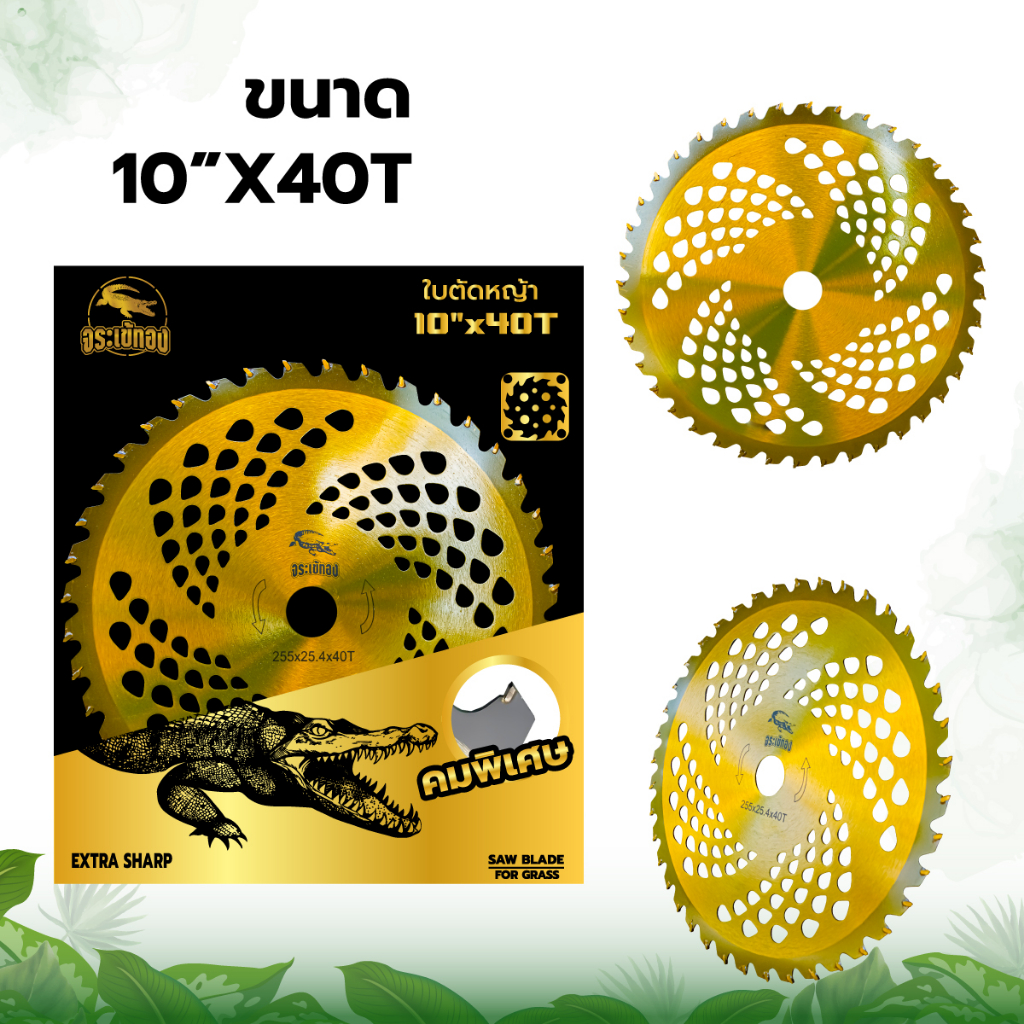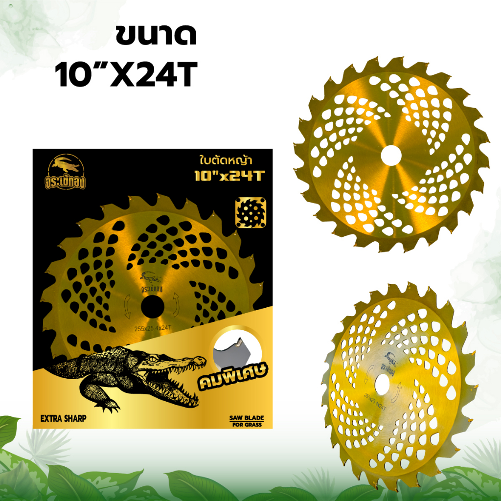 รายละเอียดสินค้า : ชื่อสินค้า : ใบตัดหญ้า ใบวงเดือนตัดหญ้า ใบตัดไม้ ยี่ห้อ : จระเข้ทอง สี : สีทอง บรรจุ : 1 ชิ้น ใบตัดมี 3 ขนาด - 10 นิ้ว 24 ฟัน - 10 นิ้ว 30 ฟัน - 10 นิ้ว 40 ฟัน คุณสมบัติ -ใบมีดตัดหญ้า ใบวงเดือน ใบเลื่อยวงเดือน 10 นิ้ว ติดเล็บ ใบมีดตัดหญ้าวงเดือน -ใช้ติดตั้งกับเครื่อง