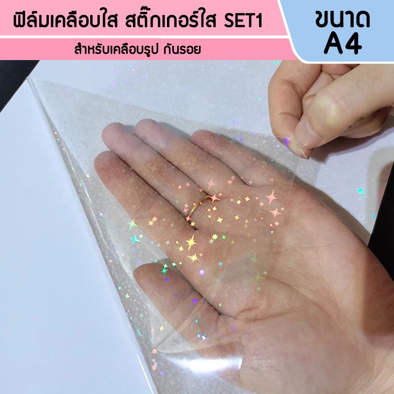 สติกเกอร์ใส ฟิล์มเคลือบเย็น ขนาด a4 โฮโลแกรม/กลิตเตอร์