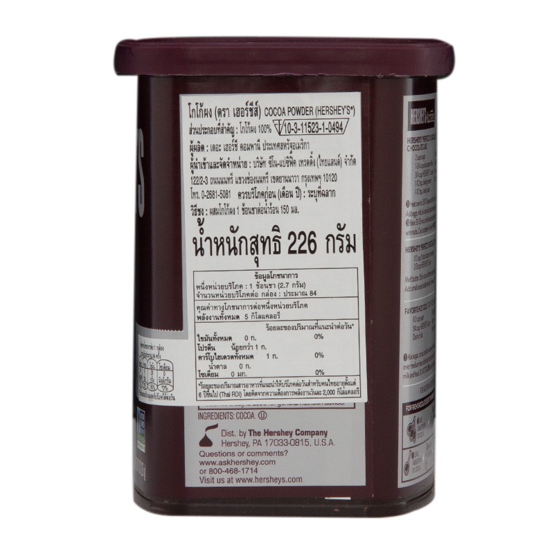 Hershey's Cocoa Powder เฮอร์ชีส์ โกโก้ผง 8ออนซ์ ผงโกโก้ 100% จากธรรมชาติ เหมาะสำหรับทำขนม ผสมเป็นเครื่องดื่ม ใช้ง่าย อร่อย มาพร้อมกับรสชาติช็อคโกแลตที่เข้มข้นและหอมหวานที่ไม่เหมือนใคร 🍫 ทำให้เป็นส่วนผสมสำคัญในการทำขนมและเครื่องดื่ม สามารถนำ Hershey's Cocoa Powder มาใช้ในการทำเครื่องดื่มร้อ