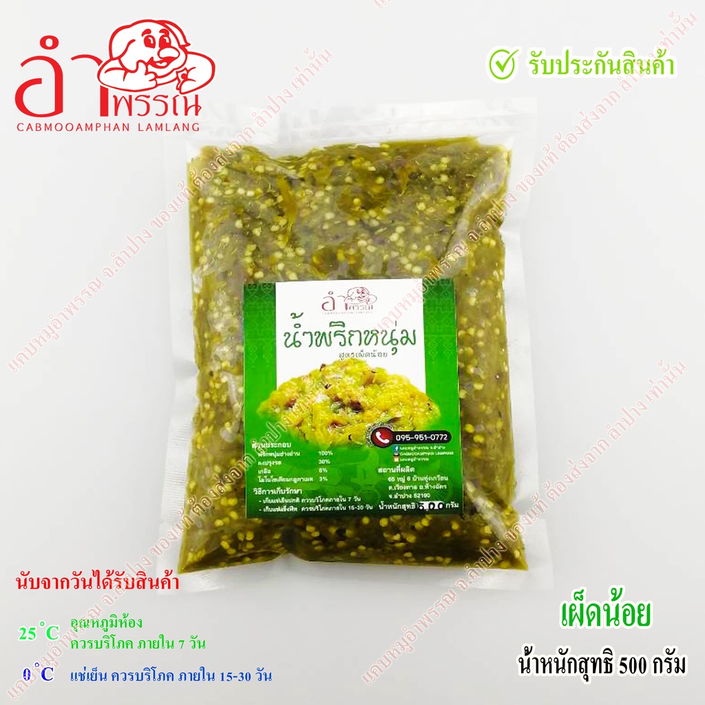 ...   (มีถั่วเหลือง มีวัตถุกันเสีย 0.1%)   3%      - เกลือผสมไอโอดีน  0.5%      - โมโนโซเดียมกลูตาเมต  (ผู้แพ้ชูรส ไม่ควรรับประทาน) 0.3%  การเก็บรักษา/วันหมดอายุ(นับจากวันได้รับสินค้า)       - เก็บไว้อุณหภูมิห้อง ควรบริโภคภายใน  6  เดือน      - เก็บแช่เย็นปกติ  ควรบริโภคภายใน  1ปี      - เก็บแช่แข็ง  ควรบริโภคภายใน  1 ปี ขึ้นไป  สายด่วนผู้ผลิต  0951421019 ผลิตโดย ห้างหุ้นส่วนจำกัด อำพรรณ ล้านนา ฟู้ดส์ 65 หมู่ 6 ตำบลเวียงตาล อำเภอห้างฉัตร จังหวัดลำปาง 52190  เงื่อนไขการประกันสินค้า       เมื่อได้รับสินค้า โปรดตรวจสอบสินค้าว่าเสีย แตก บวม บูทเปรี้ยว กลิ่นหืน หรือสูญหายระหว่างขนส่ง ถ่ายภาพความเสียหาย ติดต่อกลับมายังร้าน ผ่านแชท หรือสายด่วยผู้ผลิต 0951421019 เพื่อตกลงพูดคุยปัญหา ร้านยินดีรับผิดชอบเมื่อได้ข้อตกลงเป็นที่พอใจทั้ง 2 ฝ่าย จัดคิวส่งซ่อมให้ทันที หรือมีข้อติดขัดในระบบการสั่งซื้อ แคมเปญ โปรโมชั่น และติดขัดเรื่องของระบบการสั่งซื้อ การชำระเงิน การติดตามการจัดส่ง ร้านยินดีเป็นผู้ประสานงานกับ ส่วนที่เกี่ยวข้องให้ ทั้งนี้ หากมีการรีวิวด้านลบ ร้านเกิดความเสียหาย เสียชื่อเสียง ที่เกิดจากการที่ลูกค้าไม่ติดต่อ เพื่อให้ร้านได้แสดงความรับผิดชอบก่อน ไม่ขอรับการแก้ปัญหาจากทางร้าน ร้านถือว่าคำสั่งซื้อ เสร็จสมบูรณ์ ไม่รับการขอคืนสินค้า แต่หากมีการติดต่อมาภายหลังจากการรีวิวด้านลบ แล้วต้องการ การรับผิดชอบในความเสียหายที่เกิดจากทางร้าน และมีการพูดคุยกันเข้าใจ มีการแก้ไขรีวิวในทางบวกให้กับร้าน >=4 ดาว เป็นที่พอใจตกลงกันได้ทั้ง 2 ฝ่าย ร้านก็ยินดีจัดคิวส่งซ่อมเคลม ให้ทันที  *** ร้านไม่รับคืน/ยกเลิกสินค้า ที่สถานะคำสั่งซื้อพร้อมจัดส่ง ที่อยู่ระหว่างทางจัดส่ง สินค้าเปิดทานแล้ว และการให้เหตุผลเป็นลบ ทำให้ร้านเสียคะแนนความประพฤติ ยกเว้นเหตุผลเปลี่ยนใจ เปลี่ยนที่อยู่เบอร์โทร เนื่องจากสินค้าเป็นอาหาร ร้านเกิดความเสียหาย โปรดอ่านคำอธิบายรายละเอียดสินค้า ให้ถีถ้วน ก่อนตัดสินใจซื้อสินค้า  *** ไม่รับการขอคืนสินค้า ที่เป็นข้อผิดพลาดที่ไม่เกี่ยวข้องกับร้านหรือลูกค้าไม่ประสานติดต่อมา เพื่อให้ร้านได้รับผิดชอบในความเสียหายหรือความเข้าใจผิดด้านข้อมูลของตัวสินค้า ทั้งนี้ถ้าเป็นความผิดพลาดด้านระบบ ร้านทำได้เพียงประสานงานให้ไปยังเจ้าของระบบเท่านั้น  *** หากมีการสั่งซื้อแล้วไมรับสินค้า สินค้าตีกลับ โดยไม่มีเหตุผล (เหตุผลเป็นลบ ทำให้ร้านเสียคะแนนความประพฤติ ยกเว้นเหตุผลเปลี่ยนใจ เปลี่ยนที่อยู่เบอร์โทร) ติดต่อกลับไม่ได้ ร้านเก