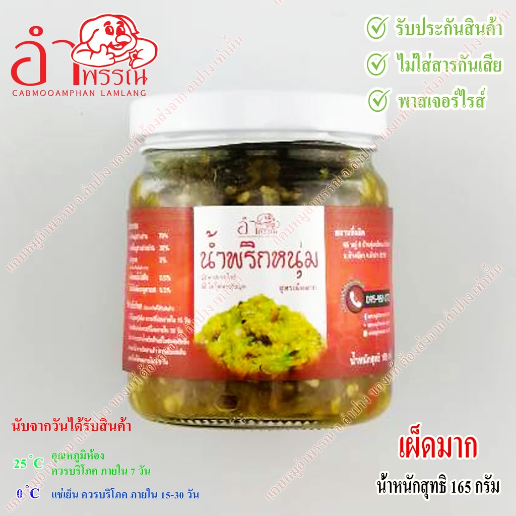 น้ำพริกหนุ่ม สูตรดั้งเดิม ลำปาง (ไม่ผสมปลาร้า ไม่ผสมมะเขือยาว ไม่แต่งสีกลิ่น ย่างถ่าน ฆ่าเชื้ออาหาร)