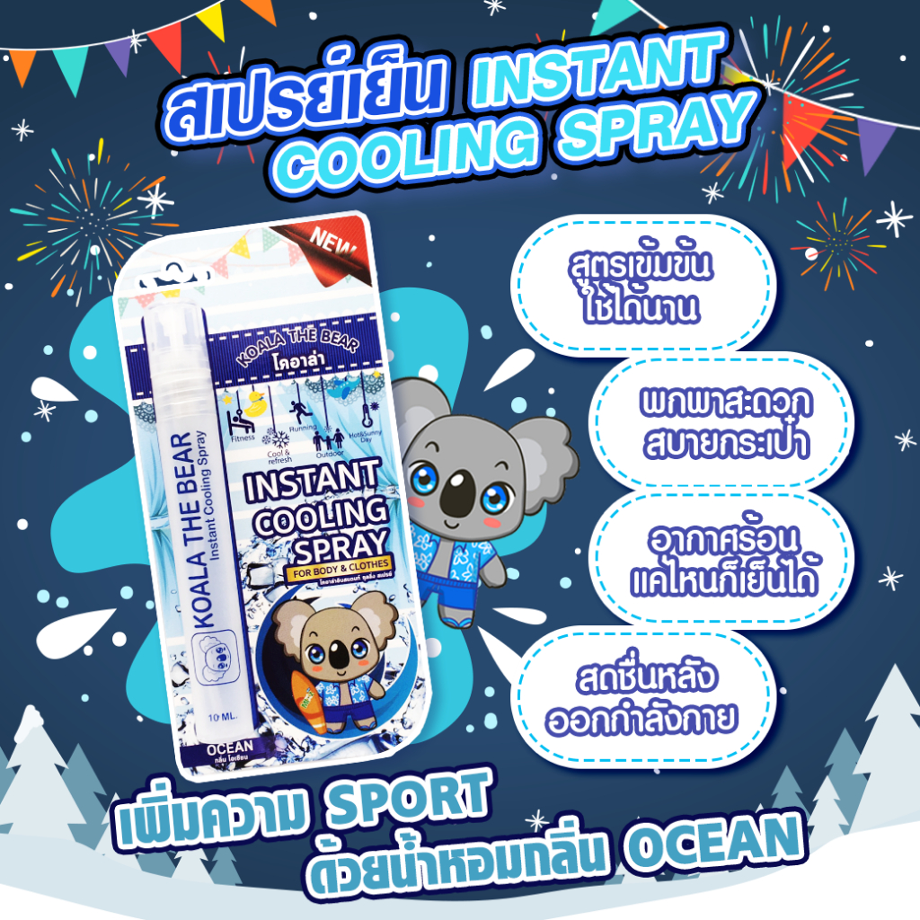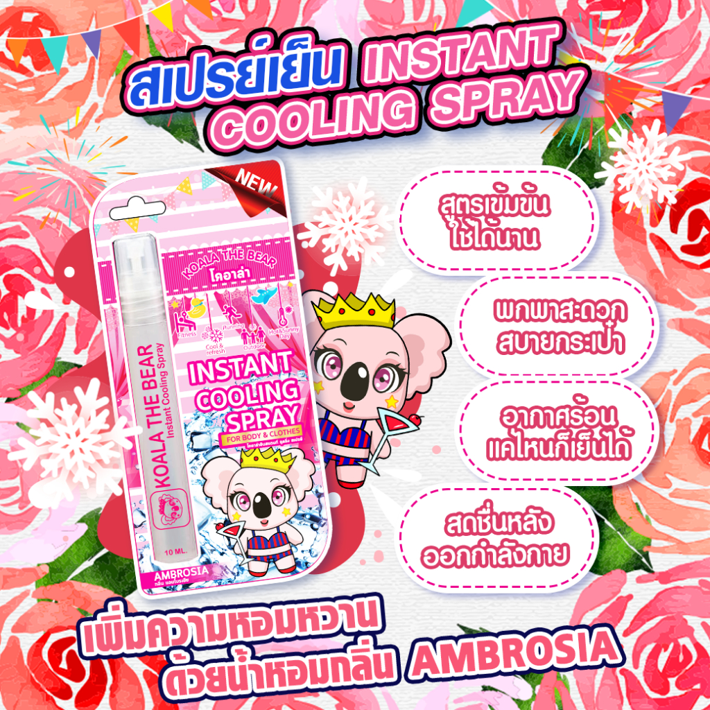 Koala the bear สเปรย์เย็น กลิ่นหอม ปากกาหนีบเสื้อได้ พกง่ายไม่หล่น Instant Cooling Spray 10 ml