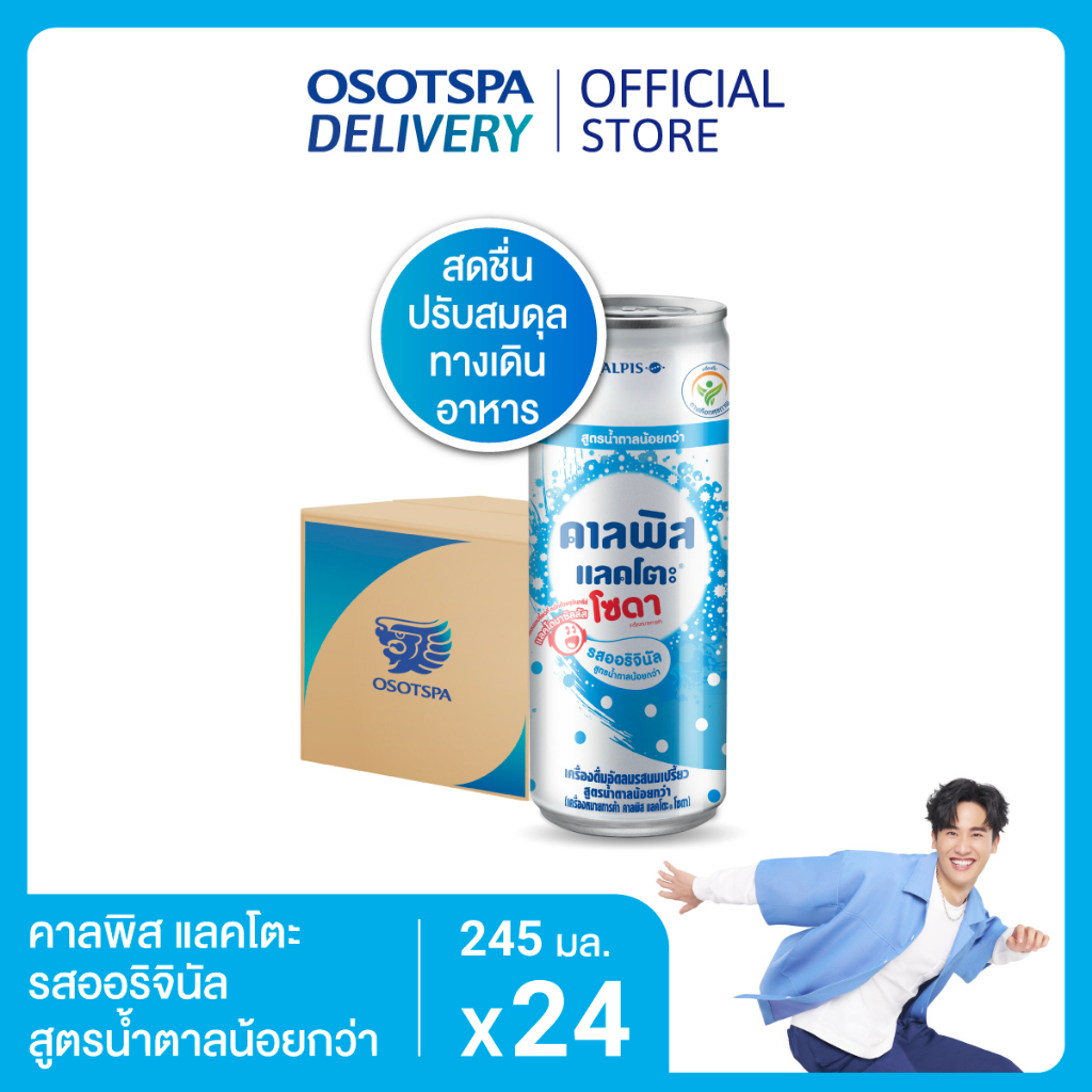 ... ็นประโยชน์ต่อร่างกาย ไม่เพียงช่วยรักษาสมดุลของระบบทางเดินอาหาร ยังมีส่วนช่วยในการกระตุ้นระบบภูมิต้านทาน บรรเทาโรคภูมิแพ้ บำรุงผิวพรรณ ปรับสมดุลความดันโลหิต ป้องกันไข้หวัดใหญ่ เครื่องดื่มคาลพิส แลคโตะ รสออริจินัล สูตรน้ำตาลน้อยกว่าลดปริมาณน้ำตาลลง 64% เทียบกับเครื่องดื่มอัดลมนมเปรี้ยวสูตรปกติ, เครื่องดื่มอัดลมนมเปรี้ยว สูตรน้ำตาลน้อยกว่า มีน้ำตาล 12 กรัม ต่อ 245 มิลลิลิตร ส่วนประกอบคาลพิส แลคโตะ รสออริจินัล สูตรน้ำตาลน้อยกว่า (Calpis Original Less Sugar) โดยประมาณ น้ำตาล 4.9% นมผงขาดมันเนย 0.73% นมเปรี้ยว 0.2% (หมักด้วยจุลินทรีย์ แลคโตบาซิลลัส) ข้อมูลคาลพิส แลคโตะ รสออริจินัล สูตรน้ำตาลน้อยกว่า (Calpis Original Less Sugar) สำหรับผู้แพ้อาหาร มีผลิตภัณฑ์จากนมและถั่วเหลือง, สารควบคุมความเป็นกรด (INS 330, INS 331(iii)), สารให้ความหวานชูคราโลสและเอซิซัลเฟม เค, สารกันเสีย (INS 211), สารป้องกันการเกิดฟอง (INS 900a), สารให้ก๊าซคาร์บอนไดออกไซด์ (INS 290), แต่งกลิ่นธรรมชาติและเลียนกลิ่นธรรมชาติ คำเตือน เมื่อเปิดเครื่องดื่มคาลพิส แลคโตะแล้วควรบริโภคให้หมดทันที ขนาดบรรจุ 245 มิลลิลิตร (แพ็ค 24) หมายเลขอย. 10-1-22323-5-0003