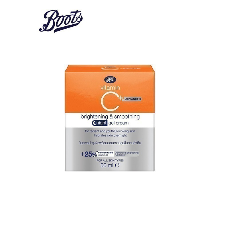 BOOTS VITAMIN C บู๊ทส์ วิตามิน ซี แอดวานซ์ ไบร์ทเทนนิ่ง แอนด์ สมูทติ้ง ไนท์ เจล ครีม 50 มล