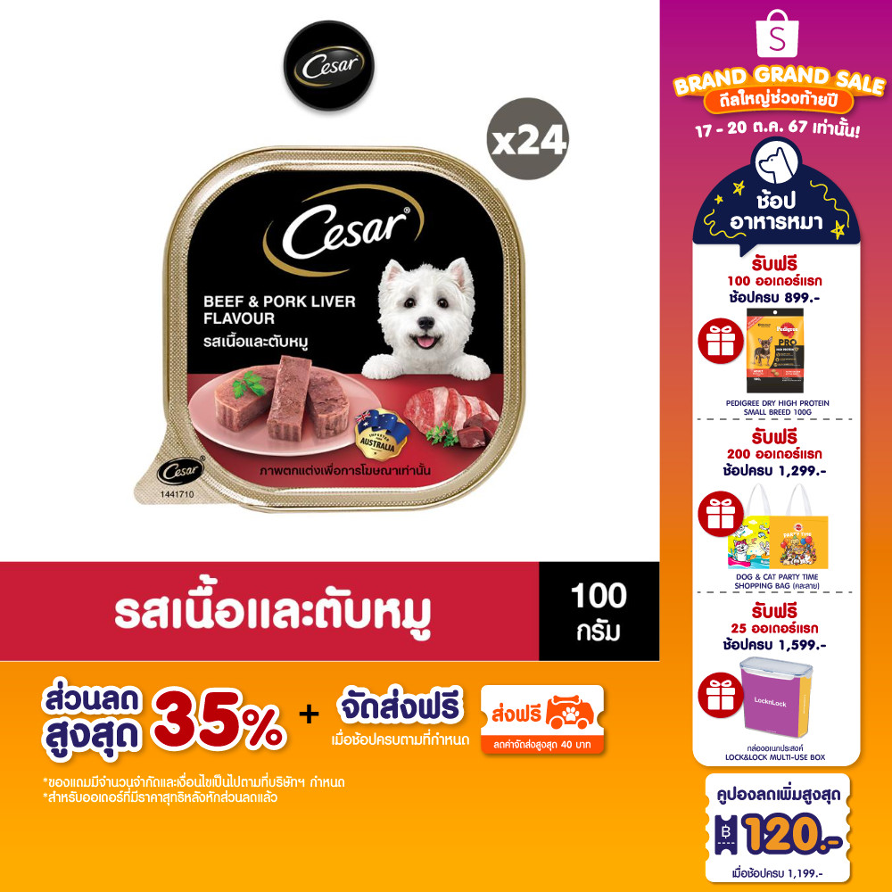 [ขายดี] CESAR ซีซาร์ อาหารสุนัขพรีเมียมเพื่อประสบการณ์การทานอาหารแสนอร่อย 100 กรัม (แพ็ก 24)