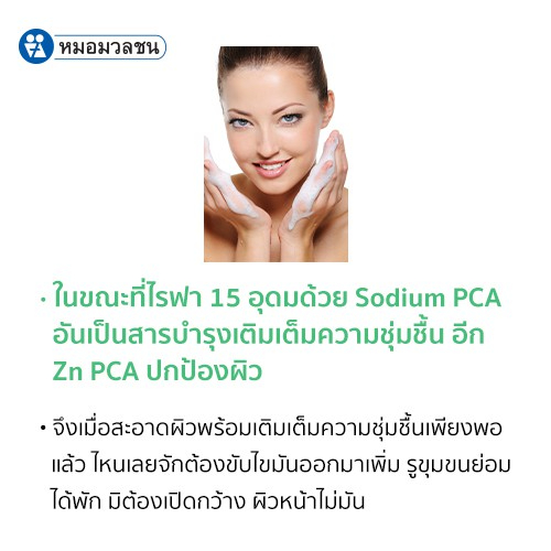 เจลล้างหน้าใสบริสุทธิ์ ทำความสะอาดผิวอย่างอ่อนโยน มีค่า pH 6.5-7 เหมาะสำหรับผิวธรรมดา ผิวมัน และผิวที่เป็นสิว มี Sodium PCA และ Zinc PCA บำรุงผิวหน้าให้ชุ่มชื้น ไม่แห้งตึง ปราศจาก Sodium Lauryl Sulfate (SLS) วิธีการใช้ : ลูบน้ำทั่วใบหน้า หยดไรฟา 15 เพียงเล็กน้อยลงบนฝ่ามือ ฟอกทั่วใบหน้า แล้วล้