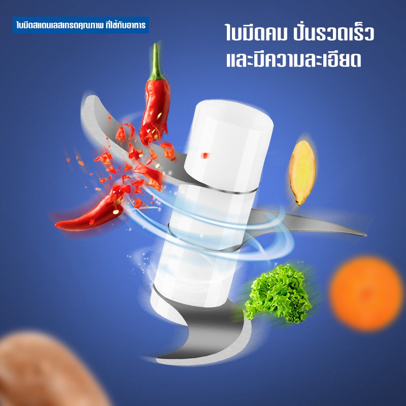 ... ทียม และผักผลไม้อีกหลายชนิด เหนือกว่าด้วยการดีไซน์ที่สวยงาม ขนาดกะทัดรัดพอดี ใช้งานง่ายตามความต้องการของคุณแม่บ้านที่ชอบเข้าครัวบ่อยๆ สินค้า Premium พร้อมส่ง เอาใจแม่บ้านสายหวานที่ชื่นชอบและหลงไหลในการทำกับข้าว ช่วยประหยัดพลังงานและลดเวลาในการทำอาหาร คุณสมบัติ: - ใบมีดผลิตจากสแตนเลสสตีลคุณภาพสูง ทนต่ออุณหภูมิสูงและทนต่อการกัดกร่อน - มอเตอร์ทรงพลัง 45W หมุนเต็มประสิทธิภาพ ลดเสียงรบกวน มีอายุการใช้งานยาวนาน - ชาร์จแบตเตอรี่ผ่านสาย USB โดยอินเตอร์เฟซการชาร์จ USB ออกแบบมาให้กันน้ำ ทำความสะอาดง่าย - ใช้งานง่าย เพียงแค่ใส่อาหารลงในภาชนะ ปิดฝา แล้วกดสวิตช์ค้างไว้ เครื่องบดจะทำงานตามความต้องการของคุณ - ใช้บดสับอาหารได้หลากหลายชนิด เช่น กระเทียม,ขิง,พริก,ถั่วลิสง,วอลนัท,ผักผลไม้ต่างๆ ฯลฯ *** คำแนะนำการใช้งาน *** หลังจากลูกค้าได้รับสินค้าแล้ว กรุณานำสินค้าเสียบชาร์จพลังงานให้เต็มก่อน เพื่อให้การใช้งานได้อย่างเต็มประสิทธิภาพ รุ่น - Y610(สีดำ)-150ml - รุ่น - Y625W(สีขาว)-250ml - รุ่น - Y625B(สีฟ้า)-250ml - รุ่น - Y625P(สีชมพู)-250ml รายละเอียด ชื่อ: ไร้สายมินิไฟฟ้าสับอาหาร ความจุสูงสุด: ( Y610 - 100ml ) / ( Y625W,B,P - 250ml ) ขนาด: ตามภาพที่แสดง แรงดันไฟฟ้าแบตเตอรี่: 3.7V จัดอันดับในปัจจุบัน: 6A กำลังไฟ: 45W แรงดันไฟฟ้าขาเข้าที่กำหนด: 5V กระแสไฟเข้าสูงสุด: 0.3A ฟังก์ชั่น: สับกระเทียม,ขิง,พริก,ถั่วลิสง,วอลนัท,ฯลฯทำอาหารเสริม,น้ำผลไม้,มิลค์เชค,ขนมหวาน,สมูทตี้ฯลฯ ---------------------------------------------------------------------------------------------------------------- #เครื่องบดสับอาหารMINI #เครื่องบดสับอาหารไร้สาย #ใบมีดสเตนเลส #ไร้สาย #ชาร์จด้วยUSB #เครื่องบดสับพกพา