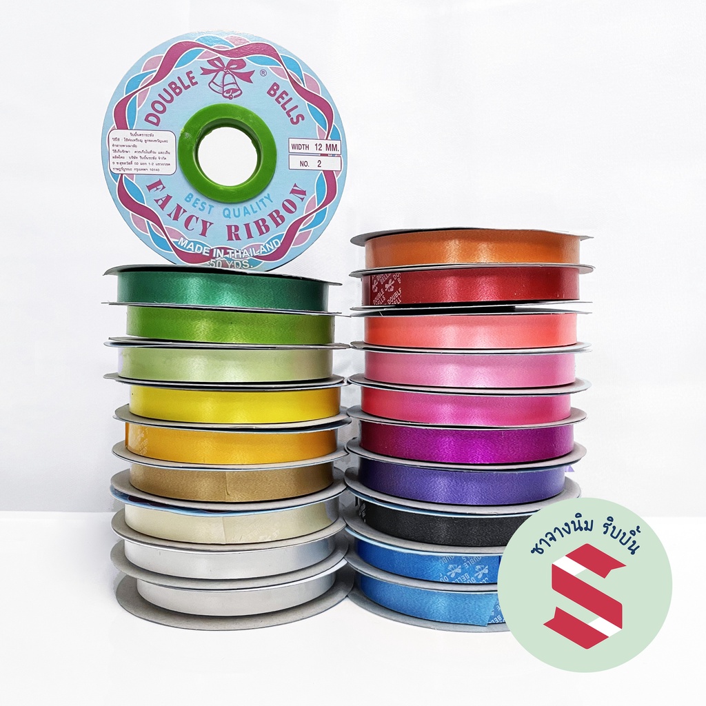 ริบบิ้นเนื้อทรายตราระฆังแบบปกกระดาษเบอร์2ยาว 50หลา💥มี19สี💥 เหมาะกับมือใหม่หัดพับ (มีราคาส่ง)