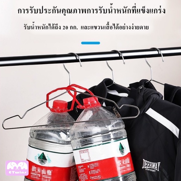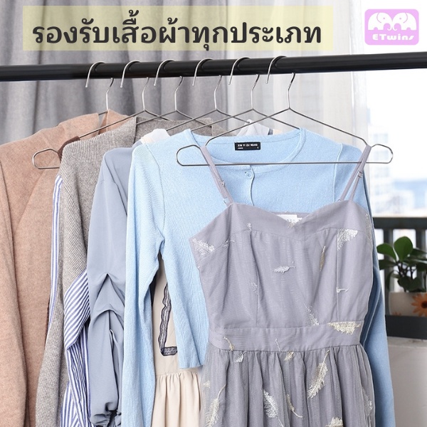 ไม้แขวนเสื้อ สแตนเลส 304แท้ หนา3.2mm / 3mm / 2.7mm 1แพ็คมี10ชิ้น แขวนผ้า กางเกง แข็งแรง คุณภาพดี ทนทาน etwins รับประกัน
