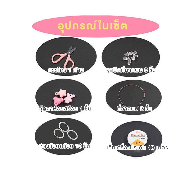 ... ดเกรด ที่ดีที่สุดให้กับลูกค้า ลูกปัด มีหลายเกรด บางครั้งสีสรรและหน้าตาคล้ายๆกันแต่ว่า เม็ดสี และเนื้อ พลาสติก อาจจะถูกผสมด้วย พลาสติก ด้อยคุณภาพ ซึ่งทำให้เกิด -สีสันของ ลูกปัด ไม่สดใส หรือลอกง่าย ซีดง่ายเมื่อโดนเหงื่อโดนแดด นานๆ หรือบางโรงงานอาจใช้ พลาสติก recycle ซึ่งมีกลิ่นสารเคมีที่รุนแรง -พลาสติกไม่ได้มาตรฐาน เกิดจากการ ผสมพลาสติก เกรดต่ำ เพื่อลดต้นทุนทำให้ การฉีดพลาสติก เวลาขึ้นรูปลูกปัด เกิดครีบพลาสติกซึ่งคม และอันตรายต่อน้องๆ บางครั้ง เกิดขึ้นในมุมอับของลูกปัดทให้ร้อยแล้วไปบาดคอ บาดมือน้องๆได้ อุปกรณ์ในเซ็ต 1.) เอ็นยืด Crystal Tec. 10 m 2.) โครงที่คาดผม พร้อมจุกปิดซิลิโคน 3.) ห่วงโลหะ สำหรับทำสร้อย 4.) กรรไกร 5.) ลูกปัด แบบพิเศษ 6.) ลูกปัด เกรดพรีเมียม โรงงานคัดแล้ว พนักงาน Double EQ plus ตรวจสอบซ้ำอีกรอบ เพื่อ การันตี คุณภาพลูกปัด 7.) คู่มือการและตัวอย่างการร้อยลูกปัด *สินค้า เซ็ต ตัวอักษร ชุดที่ 31-34 จะมีแค่เอ็นยืดกับกรรไกรแถมให้ในชุด เนื่องจากขนาดของลูกปัด จะใส่กับโครงที่คาดผมไม่ได้ **สินค้าเกรดพรีเมียมสามารถดูอุปกรณ์เพิ่มเติมได้ที่รูป นะคร้าบ บางรุ่น มีกระดิ่ง ที่คล้องแมสก์ ลูกปัดพรีเมียม หรือ ยางมัดผมแถมให้คร้าบบบ ** ช่วยสร้างเสริมสมาธิให้กับเด็กๆได้เป็นอย่างดี 👌 #DIY #ลูกปัด #สร้อย #แหวน #กำไล #ข้อมือ #Beads #ลูกปัด DIY #ศิลปะ #งานฝีมือ #ของเล่นเพื่อการศึกษา #Arts