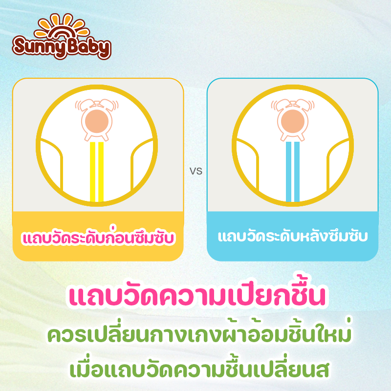 ... เศษ📌 ใช้วัสดุชนิดอ่อนนุ่มเป็นพิเศษสำหรับผิวของทารก แผ่นซึมซับ 3 มิติด้านบน ช่วยลดการเสียดสีและซึมซับได้รวดเร็วขึ้น 📌ซึมซับดีเยี่ยม ซึมซับได้ยาวนานกว่า📌 รองรับการซึมซับได้นานถึง 12 ชม *ระยะเวลาการซึมซับขึ้นอยู่กับปริมาณปัสสาวะของเด็กแต่ละคน * เพื่อสุขอนามัยที่ดีควรเปลี่ยนผ้าอ้อมชิ้นใหม่ทุก 3-4 ชม 📌เทปม้วนทิ้งอ่อนนุม พันปิดได้มิดชิด📌 ใช้เทปม้วนทิ้งคุณภาพดี จึงม้วนผ้าอ้อมได้อย่างมิดชิด ไม่เลอะเทอะ และไม่ส่งกลิ่นที่ไม่พึงประสงค์ 📌ระบายอากาศเร็ว ไม่อับชื้น📌 แผ่นแบ๊คชีทแอร์โฟว์ จะช่วยระบายความร้อนออกได้อย่างรวดเร็ว ผิวของทารกจึงแห้งสบาย ไม่อับชื้น 📌รูปทรงกางเกงใส่สบาย กระชับพอดีตัว📌 ออกแบบรูปทรงให้กระชับพอดีตัว สวม่ง่าย ใส่สบาย ถอดง่ายเพียงฉีกตะเข็บด้านข้าง 📌บอกระดับความเปียกชื้นด้วยอินดิเคตเตอร์📌 ใช้แถบอินดิเคเตอร์วัดความเปียกชื้น การเปลี่ยนสีบนของแถบอินดิเคเตอร์จะแจ้งให้เปลี่ยนผ้าอ้อมชิ้นใหม่แทนการใช้มือสัมผัส 🌈 ไซส์ทั้งหมด🌈 🎈ไซซ์ S 4-8 kg 🎈ไซซ์ M 6-11 kg 🎈ไซซ์ L 9-14 kg 🎈ไซซ์ XL 12-17 kg 🎈ไซซ์ XXL 15-20 kg 🎀ข้อแนะนำในการใช้🎀 (1) ควรเปลี่ยนผ้าอ้อมทันทีที่ผ้าอ้อมเต็ม เพื่อความสะอาดและความสบายตัวของลูกน้อย (2) ควรล้างคราบปัสสาวะหรืออุจจาระด้วยน้ำอุ่นแล้วเช็ดให้แห้ง ก่อนเปลี่ยนผ้าอ้อมตัวใหม่ทุกครั้ง (3) ควรจัดเก็บผ้าอ้อมที่แกะห่อแล้วไว้ในที่ปลอดภัย เพื่อป้องกันอันตรายให้กับลูกน้อย (4) ควรหยุดใช้ผ้าอ้อมทันทีเมื่อลูกน้อยมีอาการแพ้ 🌷หมายเหตุ🌷 โปรดเก็บผ้าอ้อมไว้ในที่แห้งและถูกสุขลักษณะ เพื่อป้องกันฝุ่นหรือแมลงปนเปื้อนในผ้าอ้อม 📍ข้อควรปฏิบัติหลังการใช้📍 ม้วนกางเกงผ้าอ้อมที่ใช้แล้วและพันด้วยเทปม้วนทิ้ง ทิ้งลงในถังขยะ ห้ามทิ้งลงในโถส้วม 💖เรียนท่านลูกค้า💖 🎀สินค้าบรรจุลังละ 3 ห่อ ถ้าสั่งซื้อครบ 3 ห่อ หรือ มากกว่า บริษัทฯ จะจัดส่งด้วยลังของสินค้า ถ้าสั่งซื้อน้อยกว่า 3 ห่อ บริษัทฯ ขอบรรจุสินค้าด้วยถุงพลาสติกในการจัดส่ง 🌹สินค้ามีอายุการใช้งาน 3 ปี นับจากวันผลิตที่ระบุบนบรรจุภัณฑ์ ⚡ บริษัทฯ จะจัดส่งสินค้าภายใน 24 ชั่วโมง หลังจากการชำระค่าเงิน คำสั่งซื้อในวันอาทิตย์และวันหยุดนักขัตฤกษ์ จะทำการจัดส่งในวันเปิดทำการวันถัดไป 🎊โปรดตรวจสอบที่อยู่ให้ถูกต้องทุกครั้งก่อนยืนยันคำสั่งซื้อ เพราะบริษัทฯ ไม่สามารถแก้ไขที่อยู่ในการจัดส่งได้ เนื่องจากเป็นกฏระเบียบของ Shopee 🎈ติดต่อสอบถามรายละเอียดเพิ่มเติมเกี่ยวกับข้อมูลสินค้าและบริการได้ที่ช่องทาง Chat #ผ้าอ้อมsunnybaby #sunnybaby #ซันนี่เบบี้ #ผ้าอ้อมซันนี่เบบี้ #แพมเพิสเด็กsunnybaby #ผ