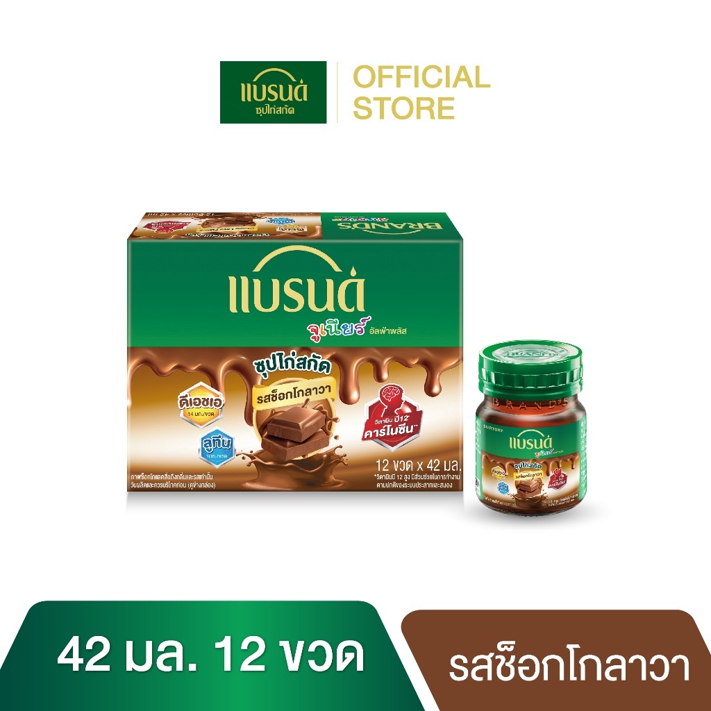 แบรนด์จูเนียร์ซุปไก่สกัด สูตร อัลฟ่าพลัส รสช็อกโกลาวา 42 มล. x 12 ขวด