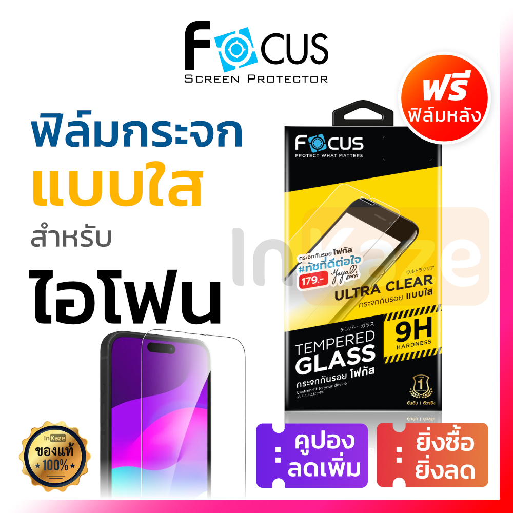 Focus ฟิล์มกระจก ใส ไม่เต็มจอ for iPhone 16 15 14 13 12 Mini 11 Pro Max X XR XS SE 7 8 Plus 8+ 6 6s 5 16+