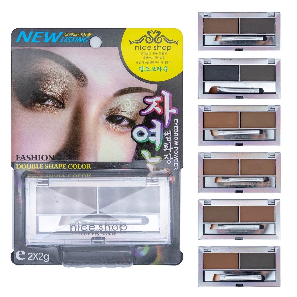 Nice Shop Eyebrow Powder เขียนคิ้วตลับ 2 ช่อง [No.404] พร้อมแปรงหัวตัดและแปรงเบลน