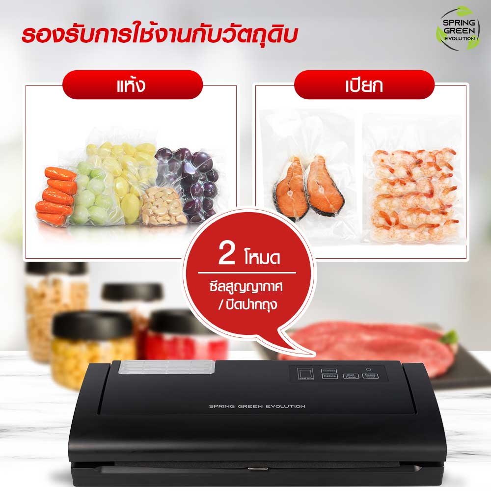 ... รุ่น VC-ECO Gen 2✨ ☆ จุดเด่นสามารถ “ซีลได้กับทุกถุง”(ยกเว้นถุงลายนูนกับถุงจีบ) ☆ กำลังการผลิตสูง 100 – 500 ใบ/วัน -------------------------------------------------------------------------------------- คุณสมบัติสินค้า ✅ ช่วยถนอมอาหารเก็บความสดได้นานขึ้น 3-5เท่า ✅ มาพร้อมแทงค์รองรับน้ำซีลได้ทั้งแห้งและเปียก ✅ จัดเป็นเครื่องซีลอเนกประสงค์ทำงานต่อเนื่องไม่มีสะดุด ✅ แถบซีลหนา 3 มิลลิเมตร ถุงไม่รั่ว ซีลละเอียดถุงสวยไม่มีตำหนิ ✅ ช่วยลดต้นทุนการผลิตได้ถึง 50% ประหยัดค่าใช้จ่าย ด้วยการใช้ถุงที่มีราคาถูกกว่า ✅ รับประกันศูนย์ไทย 1 ปี มีอะไหล่และทีมช่างให้บริการ ------------------------------------------------------------------------------ ✅ ขนาดและรายละเอียดของสินค้า ✅ พลังงานไฟฟ้า 120w กระแสไฟฟ้า 220v แรงดูดสุญญากาศ -0.7 bar ขนาดสินค้า 36.5 x 14.8 x 8.5 cm น้ำหนักสินค้า 1.6 kg ขนาดถุงที่รองรับ กว้าง 27 ซม. ความหนาแถบซีล 3 มม. รับประกัน 1 ปี ------------------------------------------------------------------------------ มาพร้อมดีไซน์ทันสมัยและทนทาน เครื่องซีลสูญญากาศกึ่งอุตสาหกรรม ทันสมัยและทนทาน สามารถซีลต่อเนื่องได้ 100 –500 ถุง/วัน ------------------------------------------------------------------------------ เครื่องซีลสูญญากาศ VC-ECOGen2 ซีลได้ทั้งแห้งและเปียก มาพร้อมแทงค์รองรับน้ำติดตั้งอยู่ด้านหลังตัวเครื่อง สามารถซีลสุญญากาศได้ทั้งวัตถุดิบแห้ง และเปียกโดยที่น้ำไม่เป็นอันตรายกับตัวเครื่อง ตอบโจทย์หลากหลายธุรกิจเพิ่มศักยภาพสำหรับการ “ซีลเปียก” สามารถใช้ได้กับวัตถุดิบที่มีความชื้นแบบหมาดๆเท่านั้น ------------------------------------------------------------------------------ แถบซีลหนา 3 มิลลิเมตร แถบซีลหนาถึง 3 มิลลิเมตร ช่วยให้การซีลถุงแน่นขึ้นในครั้งเดียว ถุงไม่แตก ไม่ซึม ไม่รั่ว เก็บไว้ได้ยาวนาน และสามารถขนส่งสินค้าที่ได้รับการซีล ผ่านไปรษณีย์ด้วยระยะทางไกลๆได้อย่างมั่นใจ ------------------------------------------------------------------------------ มั่นใจด้วยแรงดูด เครื่องซีลสูญญากาศมาพร้อมแรงดูดที่-0.8bar แรงดูดอากาศออกไปไว ประหยัดเวลา มั่นใจได้ซีลแน่น ซีลนาน อากาศไม่หลงเหลือภายในถุง ------------------------------------------------------------------------------ รองรับการใช้งานกับถุงเรียบทุกชนิด ช่วยลดต้นถุงได้ถึง 50% ถ้าเทียบกับถุงลายนูน เพราะสามารถซีลปิดปากถุงได้กับถุงเรียบได้ทุกชนิด โดยเฉพาะถุงพลาสติกราคาประหยัด ทำให้ต้นทุนสินค้าถูกลงถึง 2 เท่าเพื่อกำไรที่มากขึ้น คุ้มค่าในระยะยาว ------------------------------------------------------------------------------ ข้อควรรู้ก่อนซื้อ ซีลถุงได้ทุกชนิด(ยกเว้นถุงลายนูนและถุงจีบ) ประหยัดค่าใช้จ่ายและเป็นวิธีที่ง่ายต่อการผลิตเพิ่มมูลค่าให้กับสินค้าได้หลายเท่าไม่จำเป็นต้องใช้หลายเครื่อง เพื่อซีลถุงหลายชนิดใช้แค่เครื่องนี้รับรองเอาอยู่ ! Gallery (รูปถ่ายสินค้าจริง) เงื่อนไขการรับประกันสินค้า เพื่อประส