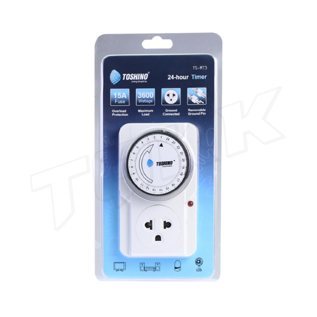... ้สูงสุดถึง 3,600 W - มีคู่มือภาษาไทยพร้อมรูปแนบ วิธีการตั้งเวลา -วิธีตั้งเวลา ดูตามคลิปนี้ได้เลย https://youtu.be/0tVShSd81K8 📌2.Ea-Es รายละเอียดสินค้า -รองรับกำลังไฟ 3500W -เต้ารับนานาชาติ -ม่านนิรภัย ล็อคม่านอัตโนมัติ เพื่อป้องกันอันตราย -จากนิ้วมือสัมผัสแผ่นทองเหลืองด้านใน -วัสดุแข็งแรง ทนทานสูง ไม่ลามไฟ -สวิทช์เปิด-ปิด ควบคุมการใช้งาน #ตั้งเวลาเปิดปิดไฟ #toshino #ปลั๊กตั้งเวลา #timer #กันลืม #ใช้ง่ายมากๆ #ตั้งเวลา #โตชิโน่