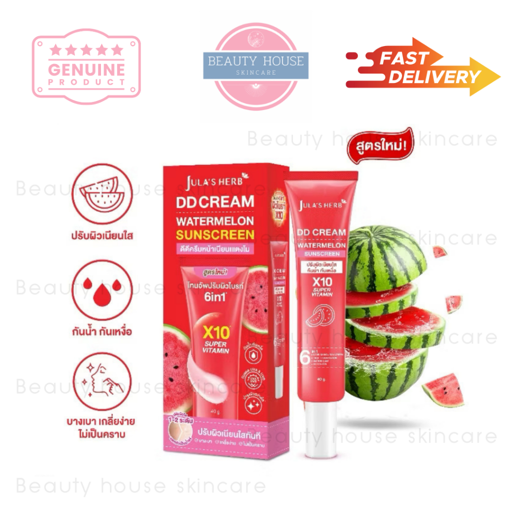 ⚠️สินค้ารับตรงจากดิสทริบิวเตอร์ (บริษัท แมสมาร์เกตติ้ง จำกัด) มีใบเสร็จยืนยันได้⚠️ ⚠️การกล่าวหาว่าทางร้านจำหน่ายสินค้าปลอม ทางร้านขอสงวนสิทธิ์ในการดำเนินการทางกฎหมายจนถึงที่สุด⚠️ 🍉🍉 DD Cream Watermelon (ดีดีครีมแตงโม) 🍉🍉 ✔️ ป้องกันได้ทั้งรังสี UVA และ UVB คุมมัน กันน้ำ กันเหงื่อ ใช้ได้กับทุก