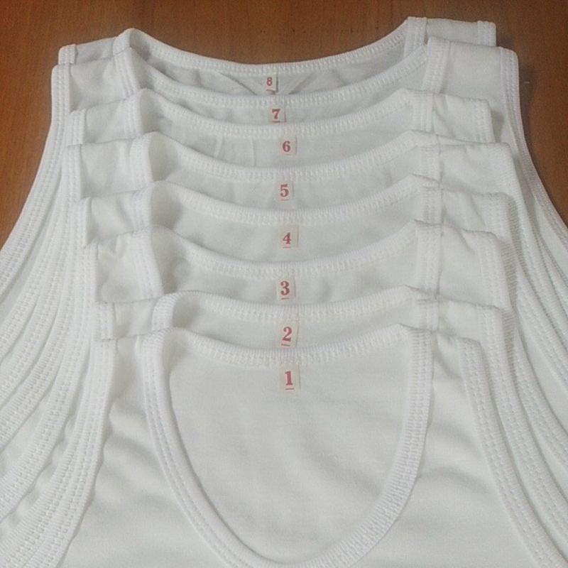 ... บางช่วงเสื้อกล้ามที่ขายอาจจะหมดชั่วคราวนะคะ ***ขอย้ำว่าผ้าบางนะคะจะได้ไม่ต่อว่ากัน*** ***กรุณาอ่านก่อนสั่งซื้อ สินค้าล็อตใหม่เนื้อผ้าแบบใหม่นะคะเป็นเนื้อผ้าราคาประหยัดซึ่งเป็นแนวทางของทางร้านที่เน้นสินค้าราคาถูกและคุณภาพการตัดเย็บที่ดีและใช้งานได้จริง มีความคุ้มค่าคุ้มราคาค่ะ เพื่อเป็นทางเลือกให้กับลูกค้าที่ต้องการความประหยัดค่ะ **เนื้อผ้าทำมาจากเส้นใยสังเคราะห์ คุณสมบัติไม่หด ไม่ย้วย สีขาวสว่างค่ะ เนื้อผ้ามีความทนทานค่ะใส่ได้นานปี มีขนาดตั้งแต่เด็กอายุ 1-14 ปี ใส่ได้ทั้งเด็กชายและเด็กหญิง ***ลูกค้าควรเลือกขนาดไซส์จากการวัดตัวเด็กเป็นหลักค่ะ 🎽🎽ขนาดรอบอกและความยาวโดยประมาณ🎽🎽 size 1 รอบอก 22"ยาว 14" อายุ 1-2 ปีน้ำหนักไม่เกิน 10 กก. size 2 รอบอก 24"ยาว 15" อายุ 2-3 ปีน้ำหนัก 14 กก. size 3 รอบอก 25.5"ยาว16"อายุ 3-4 ปีน้ำหนัก 17 กก size 4 รอบอก 27"ยาว17"อายุ 4-5 ปีน้ำหนัก 20 กก. size 5 รอบอก 28.5"ยาว18"อายุ 5-6 ปีน้ำหนัก 25 กก size 6 รอบอก 30"ยาว19"อายุ 6-8 ปีน้ำหนัก 30 กก size 7 รอบอก 31.5"ยาว21"อายุ9-11ปีน้ำหนัก 35กก size 8 รอบอก 33"ยาว22"อายุ12-14 ปีน้ำหนัก 40กก **เป็นค่าโดยประมาณโปรดเลือกไซส์จากการวัดรอบอกเป็นหลักนะคะ 🙏🙏ขอบพระคุณลูกค้าทุกท่านที่อุดหนุนค่ะ🙏🙏