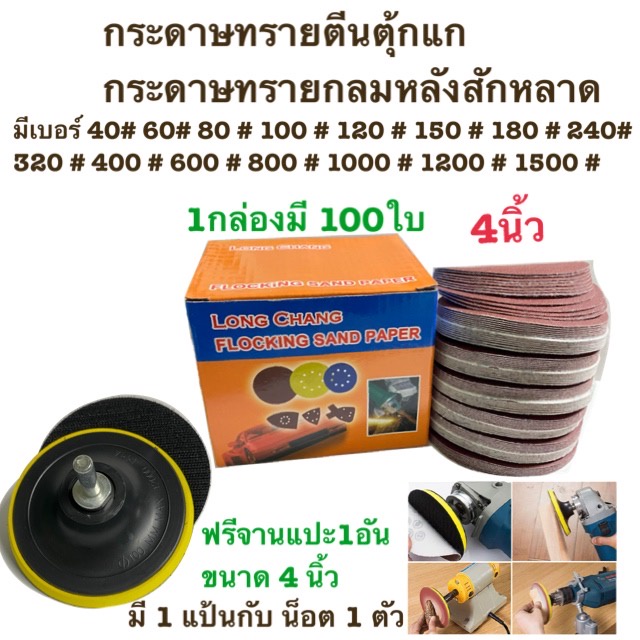 กระดาษทรายกลม หนามเตย หลังสักหลาด 4 นิ้วแพ็ค100 แผ่น เลือกได้ 1 เบอร์ มีให้เลือกแถมฟรี 1แป้นกับ น็อต 1 ตัว4"