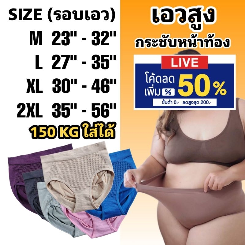 กางเกงในเก็บพุง กางเกงในคนอ้วน ไซส์ใหญ่ กางเกงชั้นในสาวอวบ เก็บหน้าท้อง ผ้าอย่างดี 150 กิโลใส่ได้