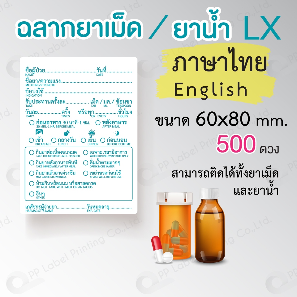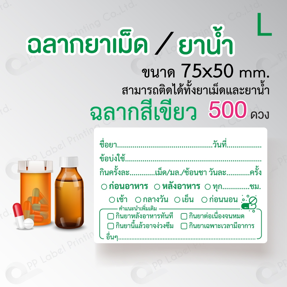 ... (ติดได้ทั้งยาเม็ดและยาน้ำ) ยาเม็ด/น้ำ เขียว XL : ขนาด 80x60 mm. จำนวน 500 ดวง/ห่อ (ติดได้ทั้งยาเม็ดและยาน้ำ) ยาเม็ด/น้ำ ฟ้า XL : ขนาด 80x60 mm. จำนวน 500 ดวง/ห่อ (ติดได้ทั้งยาเม็ดและยาน้ำ) ไทย อังกฤษ XL : ฉลากยา 2 ภาษา ไทย อังกฤษ ขนาด 80x60 mm. จำนวน 500 ดวง/ห่อ (ติดได้ทั้งยาเม็ดและยาน้ำ) ไทย อังกฤษ LX : ฉลากยา 2 ภาษาไทย อังกฤษ ขนาด 60x80 mm.. จำนวน 500 ดวง/ห่อ (ติดได้ทั้งยาเม็ดและยาน้ำ) ไทย พม่า XL : ฉลากยา 2 ภาษาไทย พม่า ขนาด 80x60 mm. จำนวน 500 ดวง/ห่อ (ติดได้ทั้งยาเม็ดและยาน้ำ) ไทย พม่า L : ฉลากยา 2 ภาษาไทย พม่า ขนาด 80x50 mm. จำนวน 500 ดวง/ห่อ (ติดได้ทั้งยาเม็ดและยาน้ำ) สติ๊กเกอร์เนื้อกระดาษอาร์ตด้าน ควรใช้ปากกา Permanent เนื้อกาวคุณภาพ ติดได้แน่น 🚩🚩🚩เงื่อนไขการรับประกัน ⛔ ทางร้านไม่มีนโยบายรับเปลี่ยนหรือคืนสินค้ากรณีสั่งผิดขนาด ผิดแบบ เพราะฉะนั้นลูกค้าควรศึกษาข้อมูลให้ละเอียดหรือสอบถามข้อมูลจากทางร้านก่อนทำการสั่งซื้อ ⛔ หากได้รับสินค้าผิดรุ่น กรุณาอย่าแกะสินค้าโดยเด็ดขาด หากสินค้าถูกแกะแล้ว ทางร้านขอสงวนสิทธิ์ไม่รับเปลี่ยน/คืน ⛔ การส่งเคลมสินค้ากับทางร้านอาจมีค่าใช้จ่ายในการจัดส่ง ******* ต้องการใบกำกับภาษีกรุณาติดต่อจากทางร้าน โดย Chat ******** กรณีลูกค้าต้องการพิมพ์ โลโก้ร้าน คลีนิก กรุณาติดต่อทางร้านเพื่อขอราคา #ฉลากยา #สติ๊กเกอร์ฉลากยา #ฉลากยาน้ำ #สติ๊กเกอร์งานโรงพยาบาล