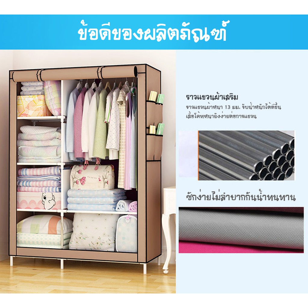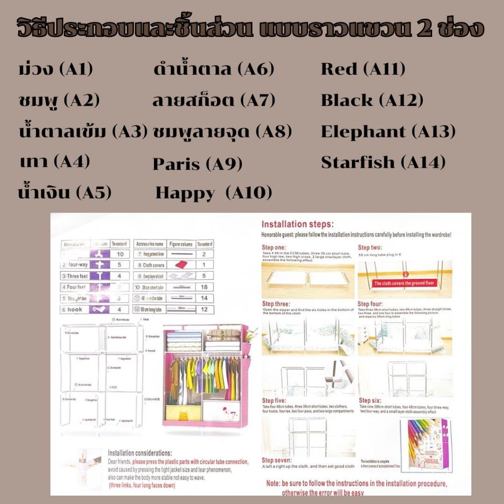 ... ัญหาการจัดเก็บเสื้อผ้าและสิ่งของต่าง เพิ่มพื้นที่ใช้สอยภายในบ้าน ตู้เสื้อผ้า 2 บล็อค ถูกห่อหุ้มด้วยผ้า Non-Woven กันน้ำและไม่จับฝุ่น สามารถรูปปิดตู้เสื้อผ้าได้อย่างสนิท หมดความกังวลกับความสกปรกของเสื้อผ้าที่เกิดจากการจัดเก็บได้เลย ตู้เสื้อผ้ามีน้ำหนักที่เบา แต่มีโครงสร้างที่แข็งแรง สามารถรับน้ำหนักได้มาก และสะดวกในการเคลื่อนย้าย ได้อย่างสบาย ๆ และประหยัดเวลาอีกด้วย 🌈🌈🌈 แบบ 2 ช่อง 🌈🌈🌈 👕 ตู้เสื้อผ้า 2 บล็อค ช่วยท่านในการจัดเก็บเสื้อผ้าของท่านให้เป็นเรื่องง่าย 👕 โครงสร้างทำด้วยเหล็กพ่นกันสนิม 👕 วัสดุผ้า Non woven คุณภาพดี 👕 ผ้าคลุมกันน้ำและกันฝุ่น 👕 น้ำหนักเบา เคลื่อนย้ายง่าย 👕 แข็งแรง รับน้ำหนักได้มาก 👕 ข้อต่อแข็งแรง 👕 ขนาด : 103 x 42 x 163 x 40 x 62 CM. : แต่ละช่อง 40 CM. 🌈🌈🌈 แบบ 1 ช่อง 🌈🌈🌈 👕 ตู้เสื้อผ้า 1 ช่อง 👕 สี : แดง กาแฟ เทา น้ำเงิน ดำ 👕 ขนาด : กว้าง 43 * ยาว 57 * สูง 146.5 CM. 👉👉👉👉👉👉👉รบกวนลูกค้าทุกท่านโปรดอ่านสักนิดนะคะ😚😚👇👇👇👇👇👇 ลูกค้าทุกท่านที่ได้รับสินค้าของทางร้านแล้วก่อนแกะถุงสินค้า/กล่องสินค้า รบกวนลูกค้าอัดวิดีโอและภาพนิ่งแล้วส่งให้ทางร้านดูทุกครั้งที่ได้รับสินค้าหากลูกค้าไม่ได้อัดวิดีโอไว้ทางร้านจะไม่รับเปลี่ยนสินค้าหรือคืนสินค้าทุกกรณีนะคะเพราะเป็นระบบของทางช็อปปี้แล้วเป็นการป้องกันสิทธิ์ของทางร้านและลูกค้าด้วยนะคะขอบคุณลูกค้าทุกท่านที่อุดหนุนสินค้าของทางร้านนะคะ👈👈👈👈 ******กรุณณาตรวจสอบการแพ็คสินค้าก่อนการรับสินค้านะคะ หากลูกค้าพบสินค้าหรือเห็นสินค้าอยู่ในสภาพไม่สมบูรณ์หรือมีการถูกแกะ ถูกฉีกขาด ถุงรั่ว การแพ็คไม่สมบูรณ์ ให้ลูกค้าปฎิเสธการรับสินค้าทันทีนะคะลูกค้า ***หากลูกค้าไม่ตรวจสอบแล้วรับสินค้าไป ทางร้านไม่รับเปลี่ยนคืนทุกกรณีนะคะ*** 🎆🎆🎆*******ทางร้านขอแจ้งให้ทราบว่า ทางร้านใช้ขนส่งของทาง shopee ไม่ได้ขนส่งเองค่ะ หลังจากสั่งซื้อสินค้าเข้ามา 1-2วันทำการทางร้านใช้เวลาในการจัดออเดอร์และแพ็คสินค้าเตรียมจัดส่งให้ รถบริษัทขนส่งนะคะ ตัดรอบทุกๆ 09:00 น. รอบจัดส่ง 1-2 วันถัดไป จากกรุงเทพฯ ได้รับสินค้าภายใน 2-8 วัน (ยกเว้นสถานการณ์พิเศษ,วันหยุดนักขัตฤกษ์และเสาร์-อาทิตย์) ทั้งนี้ทั้งนั้นขึ้นอยู่กับขนส่งของแต่ละพื้นที่ด้วยนะคะ 🎇🎇🎇*******ทางร้านมีการรับประกันสินค้าภายใน 3 วัน นับจากวันที่ลูกค้าได้รับสินค้า- รับประกัน หากสินค้า ชำรุดเสียหาย เกิดจากความผิดพลาดในกระบวนการผลิต ✨✨✨*******ในกรณีที่ได้รับสินค้าไม่ครบหรือสินค้าชำรุด สามารถติดต่อผ่านทางแชทได้เลยค่ะ ----ทางร้านต้องขอขอบคุณลูกค้าที่อุดหนุดสินค้าทางร้านมากนะคะ 