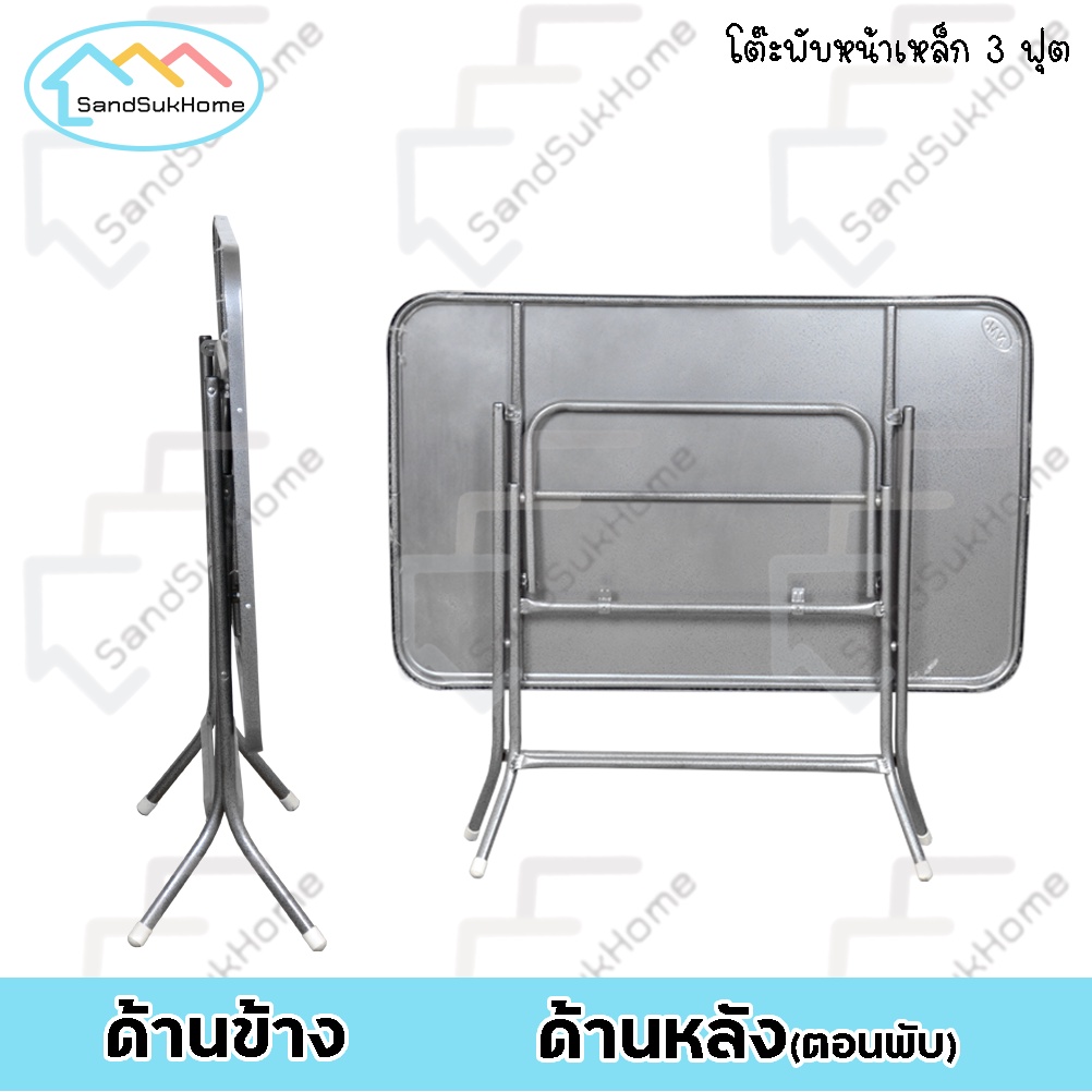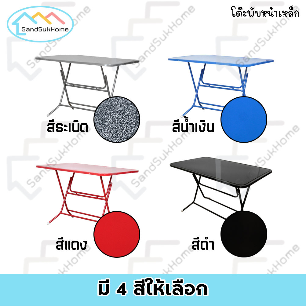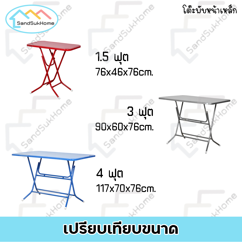 SandSukHome โต๊ะพับหน้าเหล็ก ขนาด 1.5ฟุต / 3ฟุต / 4ฟุต ขาเหล็กกลมไขว้ สามารถพับเก็บได้