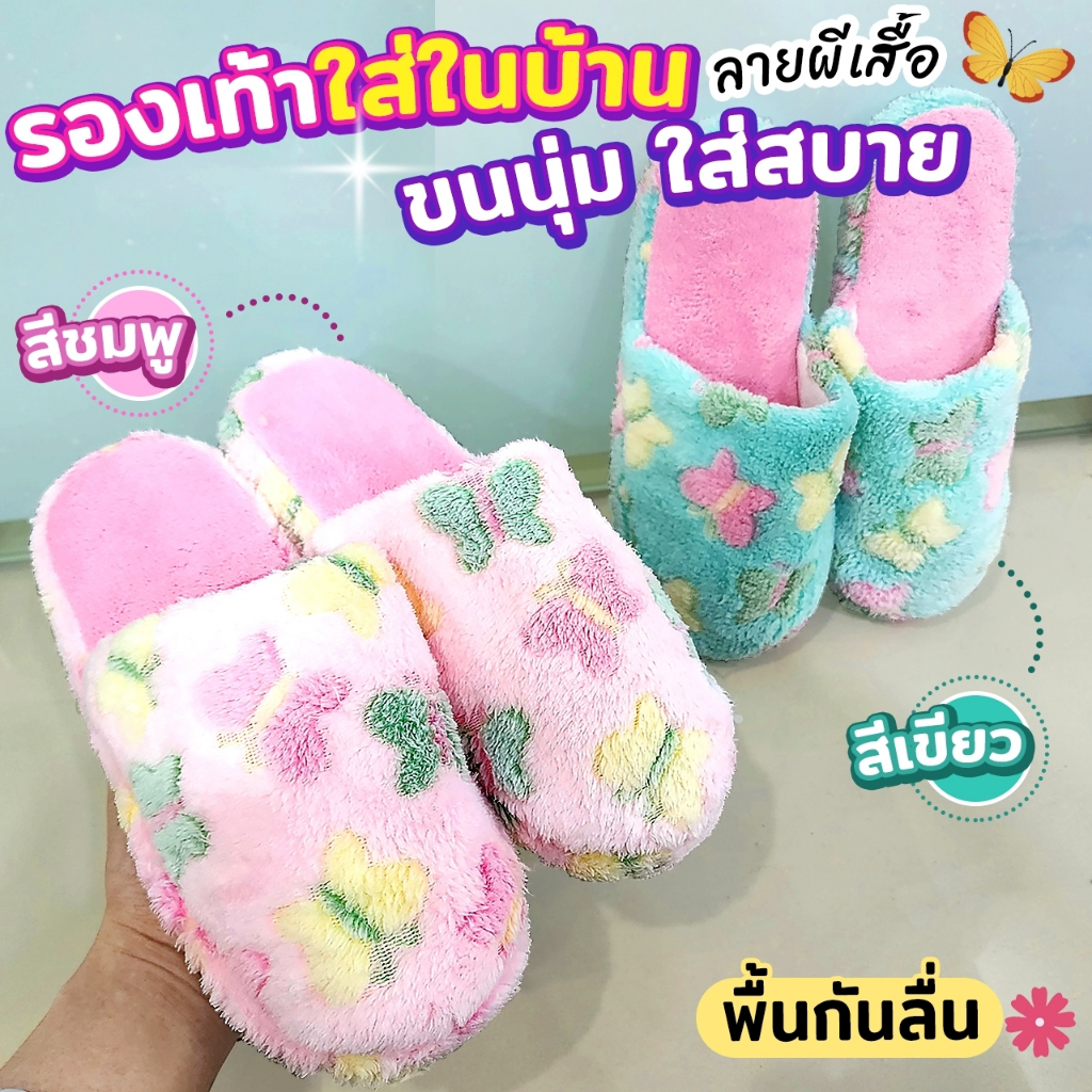 ... พื่อความสะอาดภายในบ้าน หรือเท้าสะอาดก่อนขึ้นไปนั่งนอนบนเตียง และไม่ควรใส่เดินบนพื้นเปียก 2.ผลิตจากวัสดุ :โพลีเอสเตอร์ขนนุ่ม พื้นรองเท้าทำจากยาง PVC 3.ขนาดสินค้า :FREE SIZE (9.5x26cm.) SS12-D0874_SS12-D0875_รองเท้าใส่ในบ้านลายผีเสื้อ รายละเอียด วัสดุ : ผ้ากำมะหยี่ จุดเด่น : ผลิตจากผ้ากำมะหยี่ขนนุ่มสัมผัสดี ใส่สบาย น้ำหนักเบา ลายผีเสื้อน่ารัก สีสันสวย น่าสวมใส่ พื้นรองเท้ามีปุ่มกันลื่น เหมาะสวมใส่เดินในบ้าน ใส่ในออฟฟิศ หรือใส่ในห้องนอน ลดสิ่งที่สกปรกที่มาจากเท้าของเรา เพื่อความสะอาด ซักทำความสะอาดได้ง่าย วิธีการใช้งาน : ใช้สำหรับใส่ในบ้าน ขนาด : FREE SIZE ไซส์ 40-41 / เบอร์ 9-10 สี : ชมพู, เขียว น้ำหนักสินค้า : 0.2kg. SS12-D0891_รองเท้าใส่ในบ้านลายแครอท สีส้ม ขนาด 26/38-39 รายละเอียด วัสดุ : ผ้าขนกำมะหยี่ + ผ้าขนแกะ จุดเด่น : ด้านนอกผลิตจากผ้ากำมะหยี่ขนนุ่มสัมผัสดี การออกแบบลายแครอทปักน่ารัก จุกแครอทนู่นนุ่มนิ่ม สีนสดใส พื้นด้านในผลิตจากผ้าขนแกะให้ความอบอุ่นและนุ่มสบาย พื้นรองเท้ายางหนาไม่บางกันลื่นเวลาเดิน เหมาะสำหรับสวมใส่ในบ้าน วิธีการใช้งาน : ใช้สำหรับใส่ในบ้าน ขนาด : 260MM. / 38-39 สี : ส้ม น้ำหนักสินค้า : 0.28kg.
