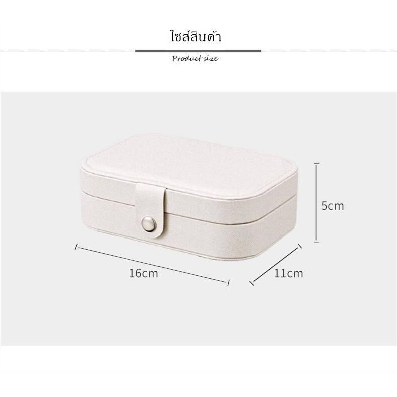 มี หลายช่อง ความจุเยอะ สามารถเก็บต่างหู สร้อยคอ แหวน นาฬิกา ฯลฯ ดีไซต์สวยงาม ดูหรู ทำจากหนัง PU กันน้ำ ทำความสะอาดง่าย ขนาด ยาว160mm *กว้าง110mm *สูง50mm สามารถพกพาได้ง่าย สะดวกต่อการใช้งาน สินค้ามี 3 สี Pearl White - สีขาวมุก Sakura Pink - สีชมพูซากุระ Blue - สีฟ้า