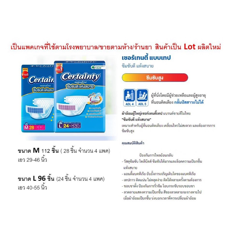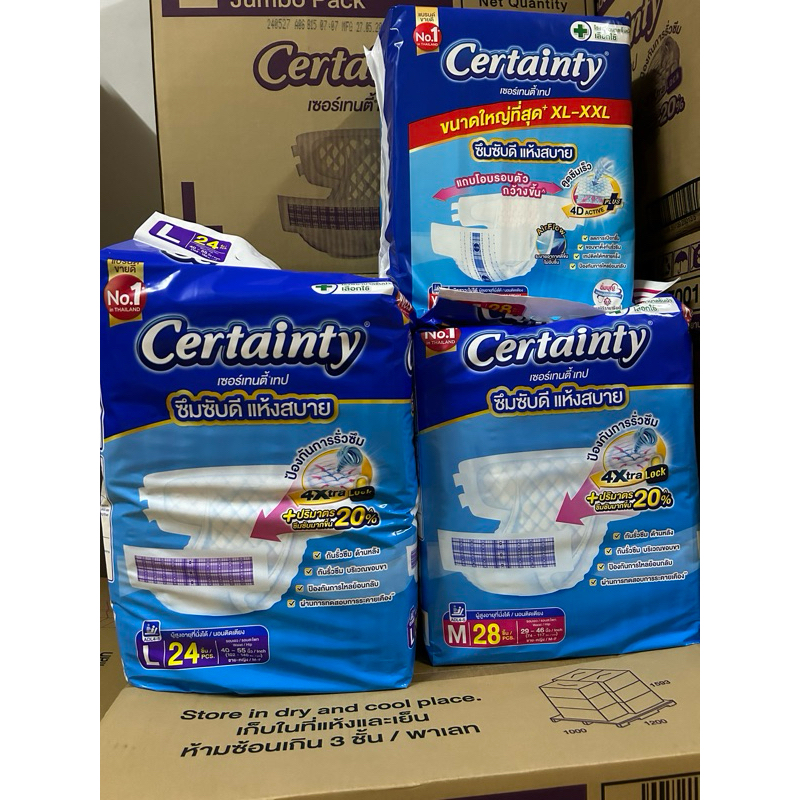 ยกลัง Certainty เซอร์เทนตี้ ผ้าอ้อม แบบเทป แพมเพิสผู้ใหญ่ ผ้าอ้อมผู้ใหญ่ เทป L M แพมเพิส ผู้ใหญ่ Certanty เซอเทนตี้ xl