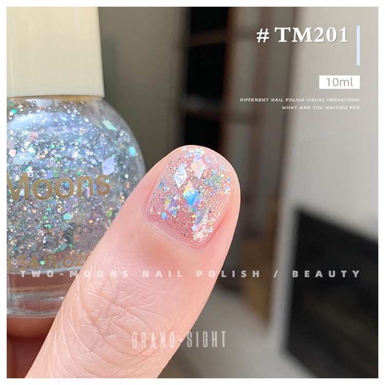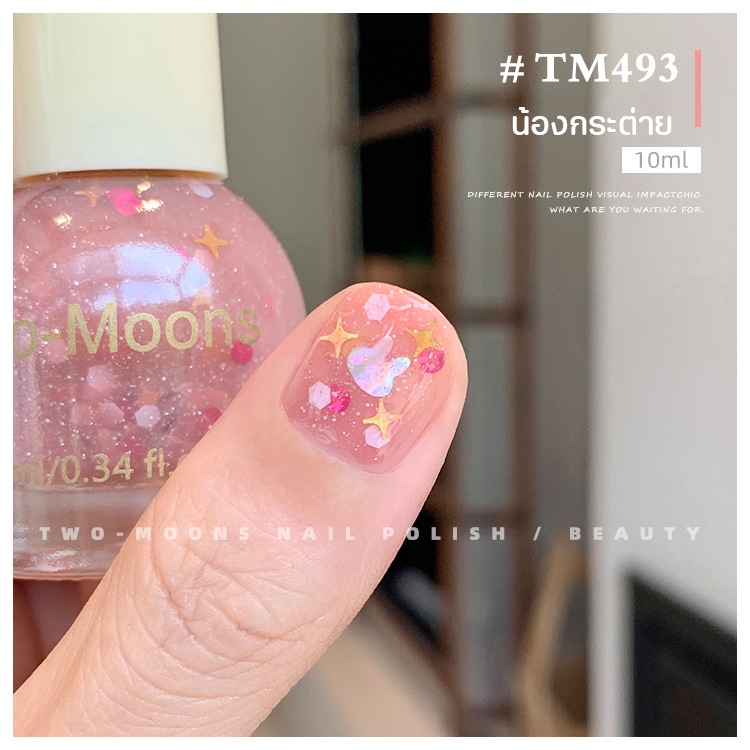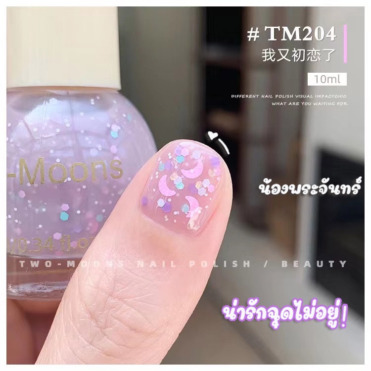 🔥พร้อมส่ง🔥 Two-moons ของแท้ ยาทาเล็บ น้ำยาทาเล็บ สีทาเล็บ สีทาเล็บกึ่งเจล กลิตเตอร์ ขนาด10ml*1 ไม่ต้องอบ สีสวย TM1