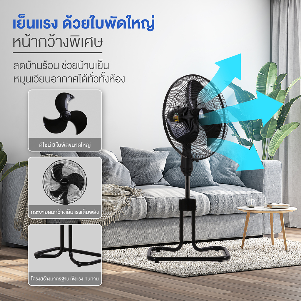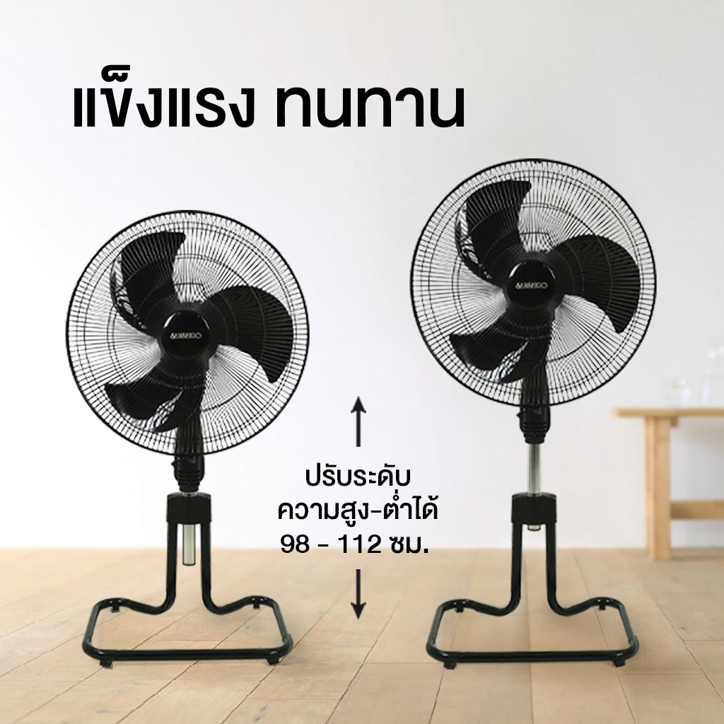 ... ที่แรงอย่างสม่ำเสมอ คุณสมบัติ - พัดลมอุตสาหกรรม 18 นิ้ว  - แข็งแรงทนทาน เหมาะกับการใช้งานทั้งภายนอก และภายใน - ปรับระดับ ความสูง-ต่ำได้ (98 - 112 ซม.) - ดีไซน์ 3 ใบพัด เพื่อลมที่แรงมากกว่าเดิม - ปรับความแรง ได้ 3 ระดับ  - ประหยัดไฟ ใช้ค่าไฟเพียง 34 สตางค์/ชั่วโมง เท่านั้น - เพิ่มความปลอดภัย ด้วยระบบตัดไฟอัตโนมัติเมื่อมอเตอร์มีอุณหภูมิสูงผิดปกติ - MADE IN THAILAND 100% - กล้ารับประกันมอเตอร์นานถึง 4 ปี เต็ม - ได้รับมาตรฐาน มอก และ ประหยัดไฟเบอร์ 5 - ผ่านการทดสอบประสิทธิภาพการประหยัดพลังที่ได้มาตรฐานตามที่ กฟผ. และกระทรวงพลังงานกำหนด  - เลข มอก. 934-2558 ข้อมูลจำเพาะ - เเรงดันไฟฟ้า : 220 โวลต์ - กำลังไฟฟ้า : 85 วัตต์ - กระเเสไฟฟ้า : 0.40 เเอมเเปร์ - ความถี่ : 50 เฮิรตซ์ ขนาดสินค้า ขนาดใบพัด : ใบพัด 460 มม./18 นิ้ว ขนาดตัวเครื่อง (ก×ย×ส) 52×38.5×98 - 112 เซนติเมตร **ค่าจัดส่งคิดตามน้ำหนักรวม sanshiro จำนวน 3 ตัว**