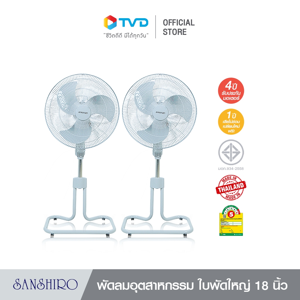 Sanshiro พัดลมอุตสาหกรรม ขนาด18นิ้ว ลมแรง ประหยัดไฟเบอร์5 รับประกัน 4ปี โดยTV Direct