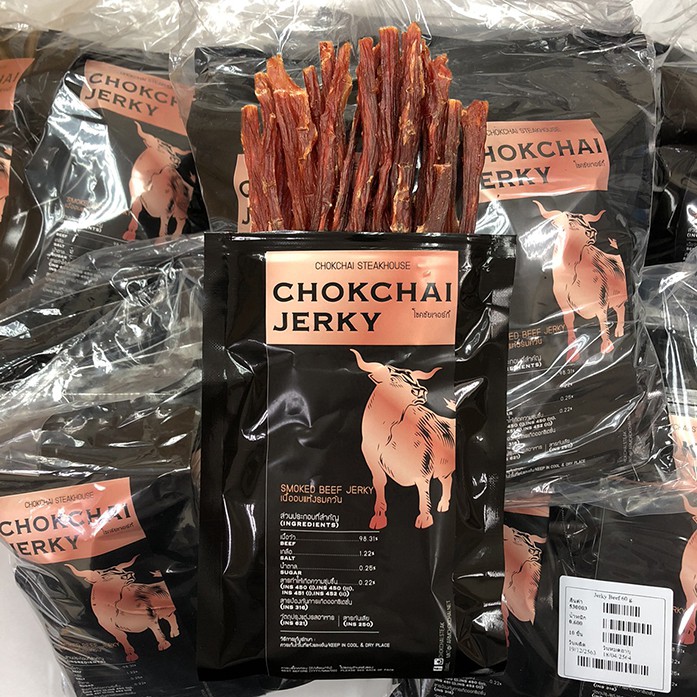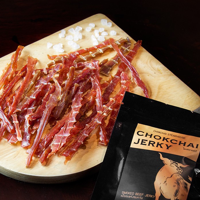 โชคชัยสเต็กเจอร์กี้ Jerky ของฝากขายดีจากฟาร์มโชคชัย เนื้ออบแห้งรมควัน ปราศจากน้ำมันและไขมัน อัดแน่นด้วยโปรตีนและสารอาหาร ที่ให้คุณประโยชน์กับร่างกาย ผลิตจากเนื้อสเต็กชั้นดีนำมาผ่านกระบวนการผลิตอย่างพิถีพิถันทุกขั้นตอน อร่อย เคี้ยวเพลิน เหนียวนุ่มกำลังดี ทานเล่นได้ตลอดทั้งวัน ต้องลองค่ะ ห้ามพ