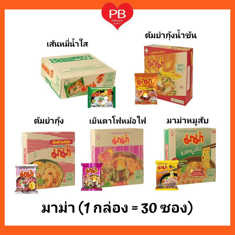 🔥ส่งเร็ว•ของแท้•ใหม่🔥!!ขายยกกล่อง!! มาม่า บะหมี่กึ่งสำเร็จรูป (ต้มยำกุ้ง,หมูสับ,น้ำข้น,หม้อไฟ,หมี่น้ำใส) (30ซอง)