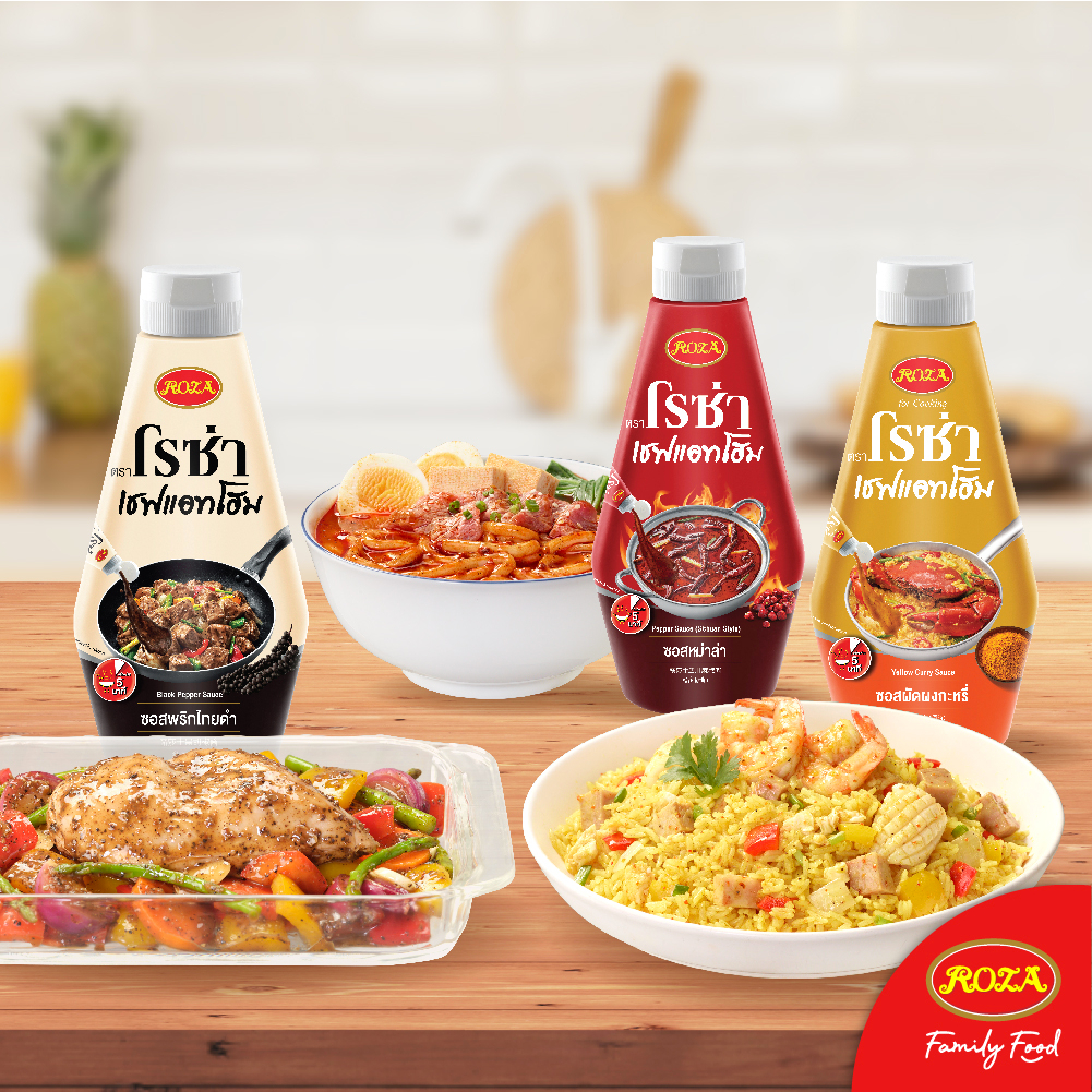 โรซ่าเชฟแอทโฮม Roza Chef@Home ซอสปรุงสำเร็จ 3 รสชาติ ผัดผงกะหรี่/ หม่าล่า/ พริกไทยดำ ขนาด 320-330 กรัม อร่อยง่ายใน 5 นาที