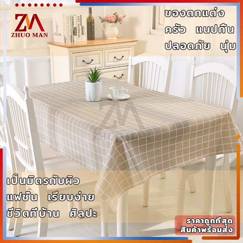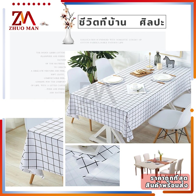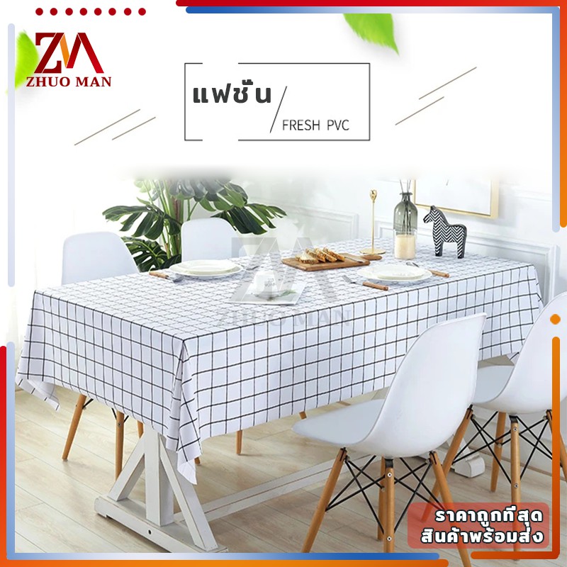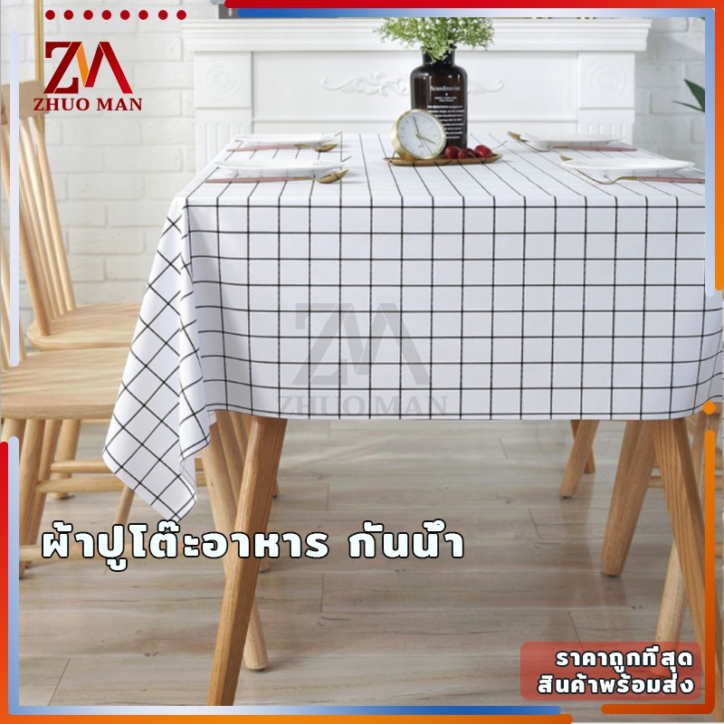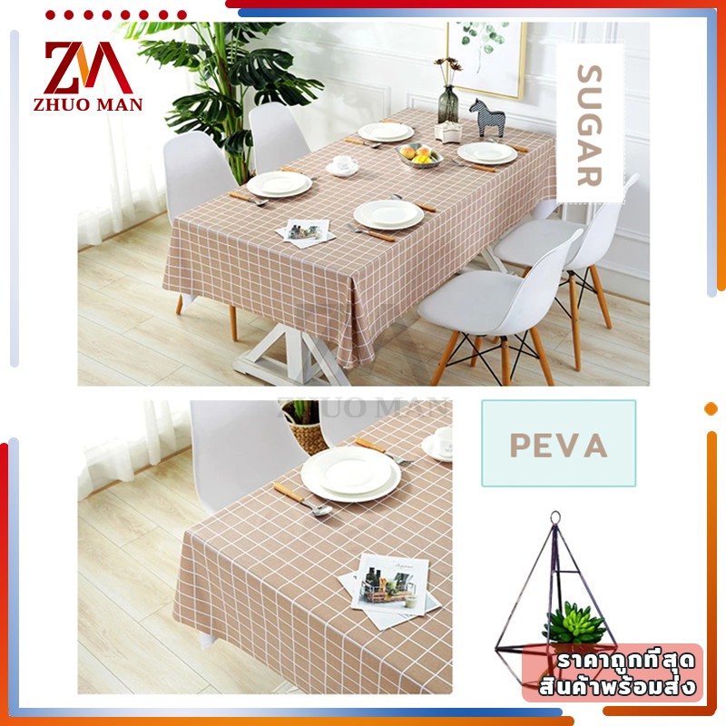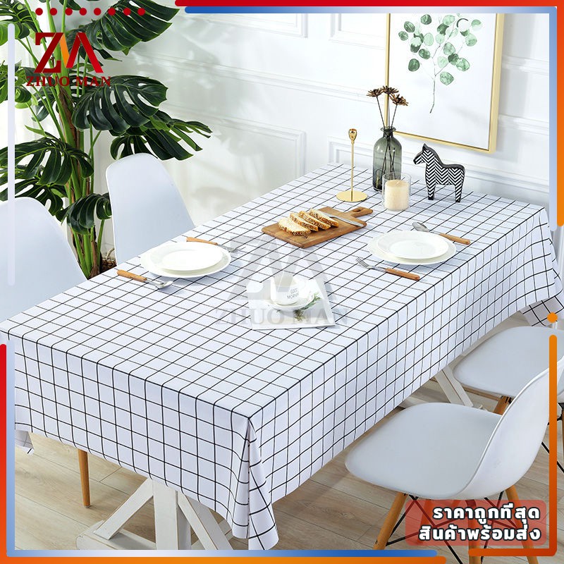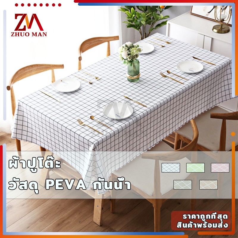 ผ้าปูโต๊ะ วัสดุ PEVA ผ้าคลุมโต๊ะ สี่เหลี่ยม ลายตาราง กันน้ำ มี 2 ขนาด กันน้ำและกันเปื้อน ทำความสะอาดง่าย
