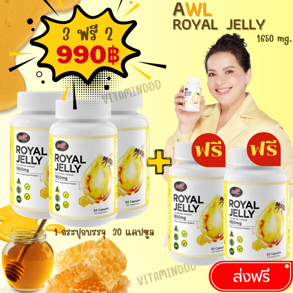 2 แถม 1 #นมผึ้งหนูแหม่ม AWL Royal Jelly 1650mg.นมผึ้งออสเวลไลฟ์ เกรดพรีเมี่ยมนำเข้าจากออสเตรเลีย บรรจ
