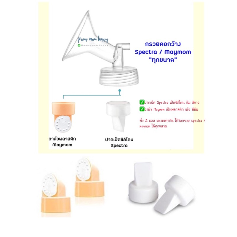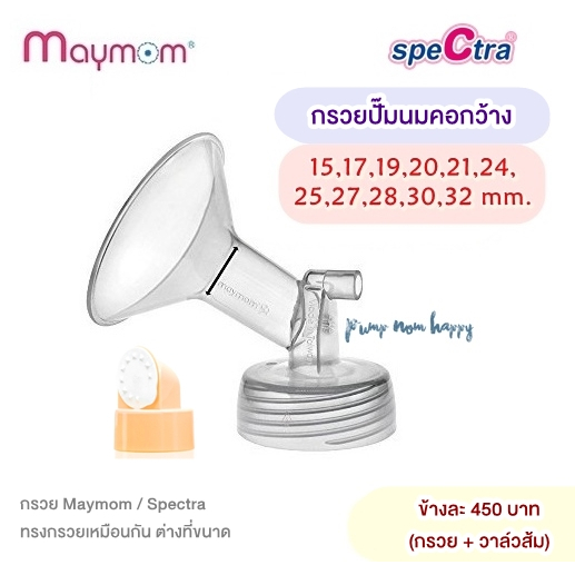 ... 8, 32mm. กรวย Maymom "คอกว้าง" > ขนาด 15,17,19,21,23,24,25,27,28,30,32 mm. *ทั้ง 2 ยี่ห้อ ทรงคล้ายกัน ให้วัดจากหัวนมเป็นหลัก 🔥กล่องกรวย spectra หาก ตัด/กรีด ซีลแล้ว **ไม่รับ/เปลี่ยน/คืน** 🔥ถุงกรวย Maymom (ในถุงจะ มีกรวย+วาล์วพลาสติกสีส้ม) หากสั่งเฉพาะกรวย ร้านจะตัดถุง และดึงวาล์วออก **ไม่รับ/เปลี่ยน/คืน** งดส่งเทส ทาบกับหัวนม งดทดลอง หรือแจ้งว่าไม่พอดี / สั่งผิด …. สั่งผิดต้องช่วยรับผิดชอบตัวเองนะคะ หากลูกค้าส่งกลับมา จะเป็นของมือสองทันที สินค้าประเภทกรวยปั้มนม รบกวนขอความสะอาด ใหม่ มือหนึ่งค่ะ ร้านไม่มีขายมือสอง ⭐️การเลือกขนาดกรวยปั๊มนม ควรเลือกให้เหมาะสม - หากกรวยเล็กเกินไป หัวนมจะแน่นเต็มกรวยปั๊ม ทำให้เจ็บและปั๊มไม่สบาย - หากกรวยใหญ่เกินไป จะดูดลานนมเข้าไปเยอะ ลานนมอาจถลอกเป็นแผล ปั๊มไม่เกลี้ยงเต้า หรือปั๊มนมไม่ออก ⭐️การเลือกขนาด #ให้วัดเส้นผ่านศูนย์กลางเฉพาะหัวนม - ซื้อก่อนคลอด บวกเผื่อ 6-8มม. เนื่องจากเต้านมและหัวนมอาจยังขยายไม่เต็มที่ - ซื้อหลังคลอด บวกเผื่อ 4-6มม. ทั้งนี้ ขนาดของกรวยปั๊ม อาจส่งผลกับแต่ละท่านไม่เหมือนกัน ขึ้นอยู่กับความยืดหยุ่นของผิวหนัง รวมถึงแรงปั้ม/จังหวะการปั้มได้ด้วย ====== 📌📌📌วาล์ว📌📌📌 ✅วาล์ว Maymom เป็นพลาสติก แข็ง สีส้ม ใช้กับกรวย spectra / maymom ได้ทุกขนาด ====== 📌📌📌กันย้อน📌📌📌 ตัวกันย้อน backflow ยี่ห้อ Maymom >> ใช้ได้กับกรวย Spectra / Cimilre / Maymom / Freemie คุณภาพดี เหมือน Spectra ของแท้ เลยค่ะ แค่ปั้มแบรนด์ คนละยี่ห้อ Maymom ได้รับมาตรฐาน USA FDA (อย. สหรัฐอเมริกา) และผลิตจากวัสดุ BPA FREE ไร้สารพิษ ทนความร้อน ปลอดภัยสำหรับลูกน้อย ===== 📌📌📌สายยาง📌📌📌 ต่อได้กับ Spectra / Cimilre / Malima etc. Silicone Tubing สายปั๊มซิลิโคน(สายยางท่อลม) ขนาดยาว 80ซม. เส้นผ่านศูนย์กลาง 3mm “บรรจุในถุงพลาสติก” คุณภาพดี ถ้าเทียบกับของแท้ ก็จะบางกว่าเล็กน้อย แต่ใช้งานได้