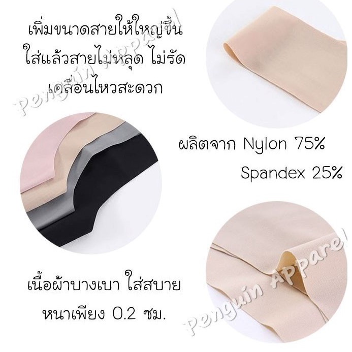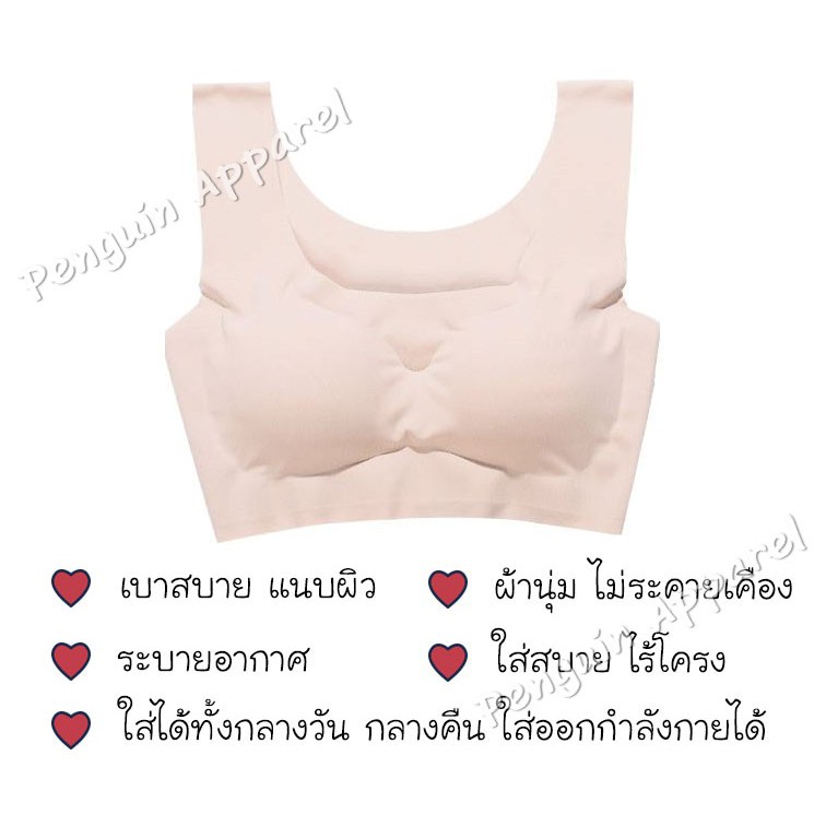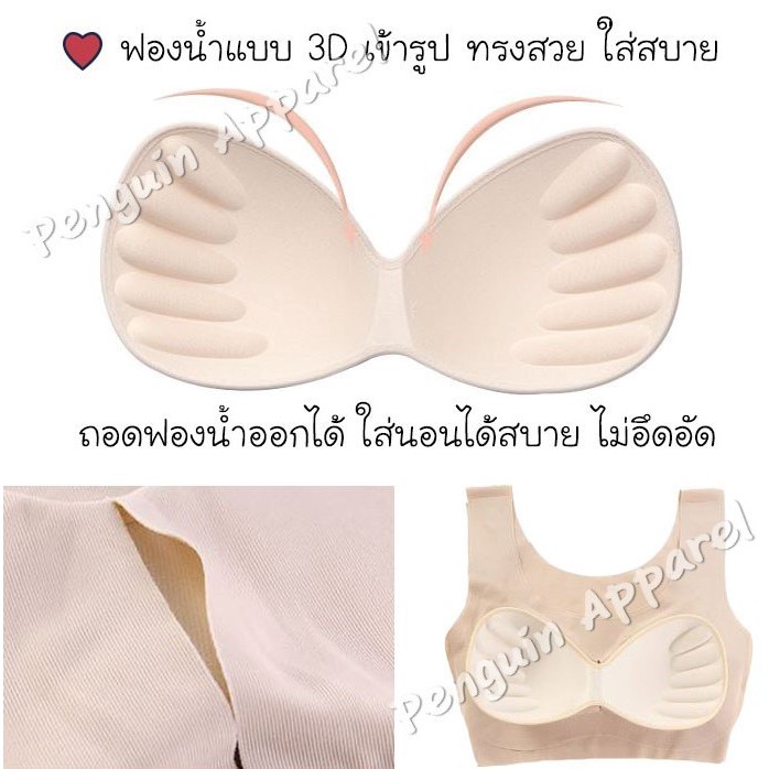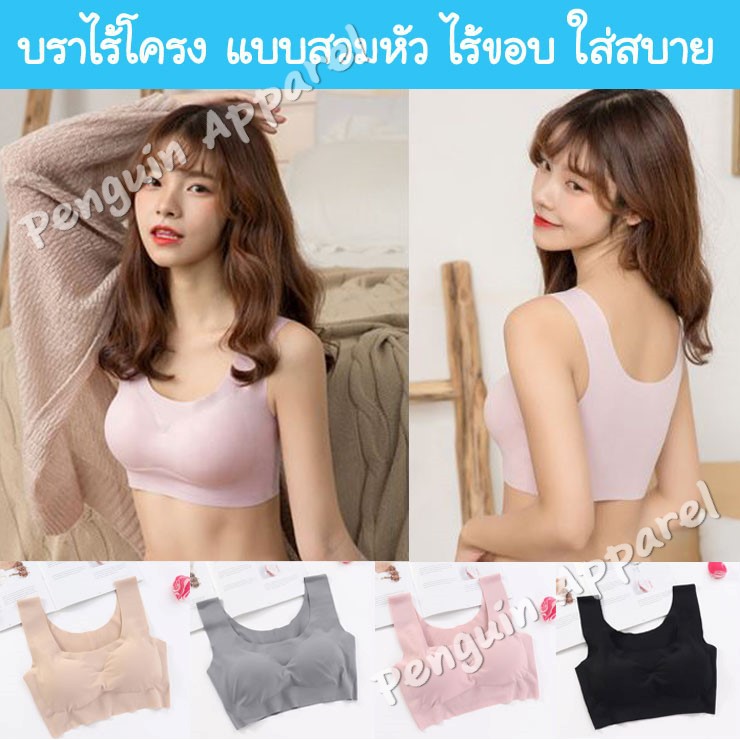 ... วนที่ต้องการสั่ง 3.กดเพิ่มไปยังรถเข็น 4.หากต้องการเลือกสีอื่นเพิ่มให้ทำตามข้อ 1-3 อีกครั้ง 5.เมื่อเลือกครบแล้วจึงกดซื้อสินค้าและทำการชำระเงิน ***** ออเดอร์แต่ละวันเยอะมาก รบกวนเลือกสีและขนาดที่ต้องการตอนสั่งซื้อ ทางร้านไม่รับเปลี่ยนแปลงรายละเอียดการสั่งซื้อ ที่อยู่และเบอร์ติดต่อผู้รับหรือผู้ส่ง ทางข้อความ แชท และช่องทางอื่นๆหลังจากทำการสั่งซื้อแล้วนะคะ *** บราไร้ขอบ ไร้โครง แบบสวมหัว ผลิตจากวัสดุคุณภาพดี 75% Nylon 25% Spandex เนื้อผ้านุ่ม หนาเพียง 0.2ซม. เบาสบาย ไม่ระคายเคือง ระบายอากาศได้ดี ผ้าแห้งเร็ว ช่วยซับเหงื่อ ใส่แล้วไม่อับชื้น สามารถใส่ออกกำลังกายได้ ฟองน้ำแบบ 3D เข้ารูป เข้าทรงสวย สามารถถอดออกเพื่อใส่นอนได้ ม้วนได้ 360 องศา ไม่เสียทรง สามารถม้วนเก็บใส่ในกระเป๋าเดินทางได้ สายขนาดใหญ่ ไม่รัด ไม่เลื่อนหลุดเวลาขยับตัว มีให้เลือก 4 ขนาด S/M/L/XL สีพาสเทล สวยหวาน S สำหรับหน้าอกขนาด 30-33 นิ้ว หรือใส่ชุดชั้นใน 70A/70B/70C/75A M สำหรับหน้าอกขนาด 32-36 นิ้ว หรือใส่ชุดชั้นใน 70C/75A/75B/75C/80A L สำหรับหน้าอกขนาด 34-38 นิ้ว หรือใส่ชุดชั้นใน 80A/80B/80C/85A/85B XL สำหรับหน้าอกขนาด 36-41 นิ้ว หรือใส่ชุดชั้นใน 85B/85C/90A/90B/90C ขนาดที่ร้านแนะนำเป็นแบบรัดกระชับหน้าอกสำหรับใส่ออกกำลังกาย ถ้าไม่ได้ใส่ออกกำลังกายแนะนำให้เพิ่มขนาดเพื่อความสบายในการสวมใส่ค่ะ กรุณาวัดขนาดด้วยสายวัดมาตรฐาน สายวัดจีนจะเป็นหน่วยนิ้วจีนไม่ใช่นิ้วสากลค่ะ สีของสินค้าอาจะมีความแตกต่างกันเล็กน้อยเนื่องจากลอตผลิตที่แตกต่างกันค่ะ และขนาดของสินค้าอาจจะคลาดเคลื่อนกัน 1-2 ซม. ในระหว่างการผลิตค่ะ สินค้าอาจจะสีตกได้ในครั้งแรกที่ซัก ให้แยกซักสินค้าดูก่อนนะคะ ควรซักด้วยมือเพื่อไม่ให้สินค้าเสียทรง ตากในที่ร่ม แดดไม่จัด #บราสวมหัว #บราไร้โครง #บราไร้ขอบ #บรา #เสื้อชั้นใน #เสื้อชั้นในสวมหัว #เสื้อชั้นในไร้โครง #เสื้อชั้นในไร้ขอบ #เสื้อชั้นในมีสาย #เสื้อใน #บราออกกำลังกาย #Sportbra #PenguinApparel