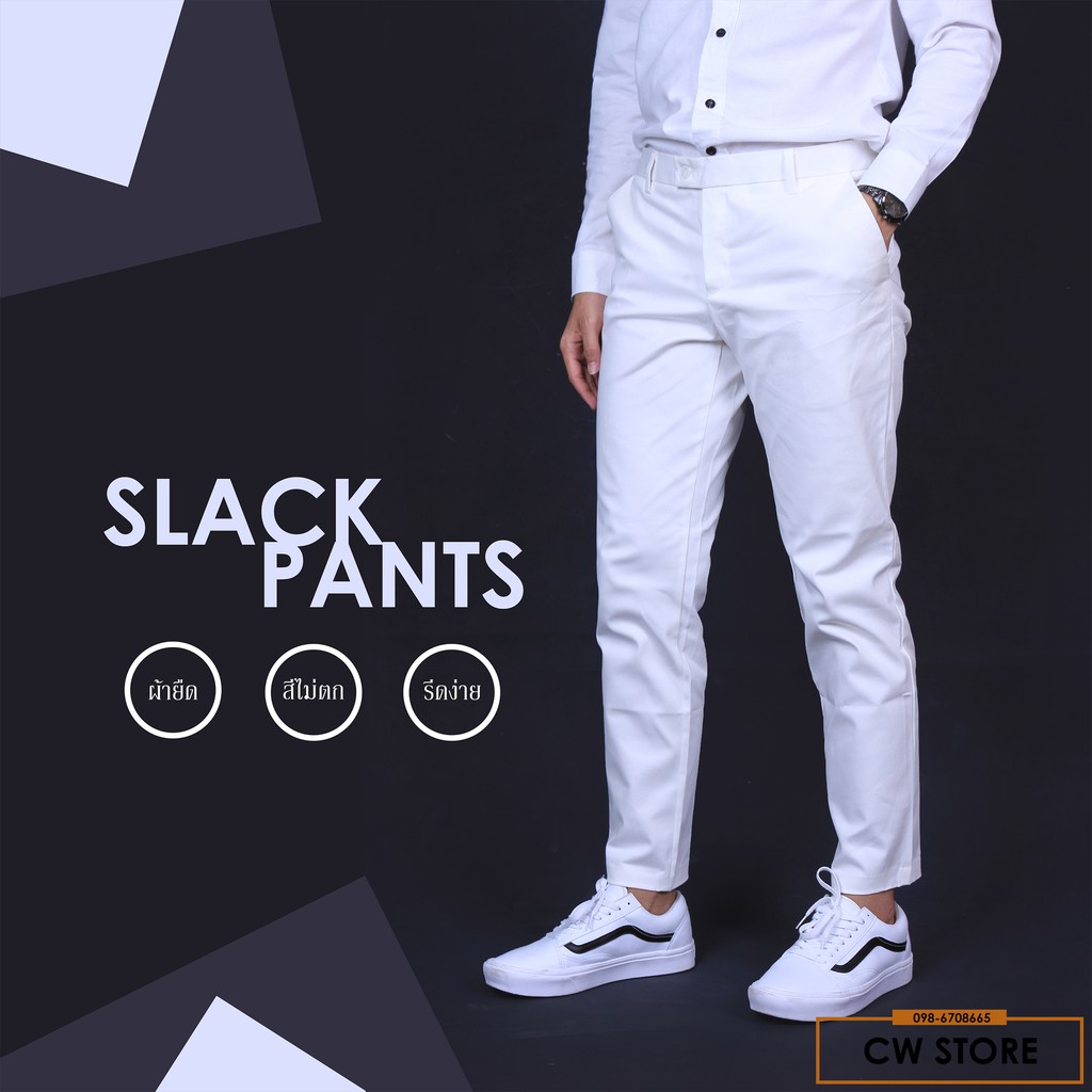 กางเกงสเเล็ค ทรงเดฟ ผ้ายืดคุณภาพดีเยี่ยม สุดฮิต!! 🔥 (สีขาว)