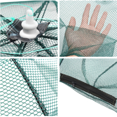 ตาข่ายสำหรับจับสัตว์น้ำ มีช่องให้กุ้งหรือปูเข้าไปภายในโดยไม่สามารถกลับออกมาได้ ตาข่ายจับปู ดักกุ้ง ใช้งานได้ง่ายและปลอดภัย สามารถใช้งานได้กับแหล่งน้ำในทุกพื้นที่! •ง่ายและสะดวกในการใช้,ไม่จำเป็นต้องติดตั้ง,เพียงดึง •ออกแบบให้มี 6 ช่อง 8 ช่อง 10 ช่อง ดักจับ,ปลา,ปู,กุ้ง•วัสดุโครงเหล็กและตาข่ายไนล่อ