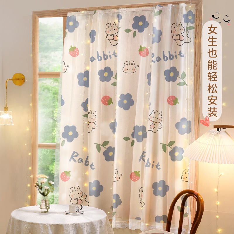 LIFE ผ้าม่านตีนตุ๊กแก ผ้ากั้นห้อง ลายการ์ตูน สไตล์มินิมอล ไม่ต้องเจาะผนัง