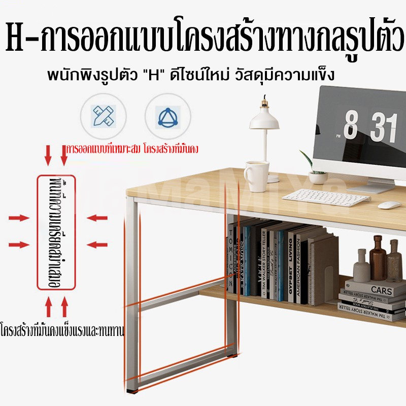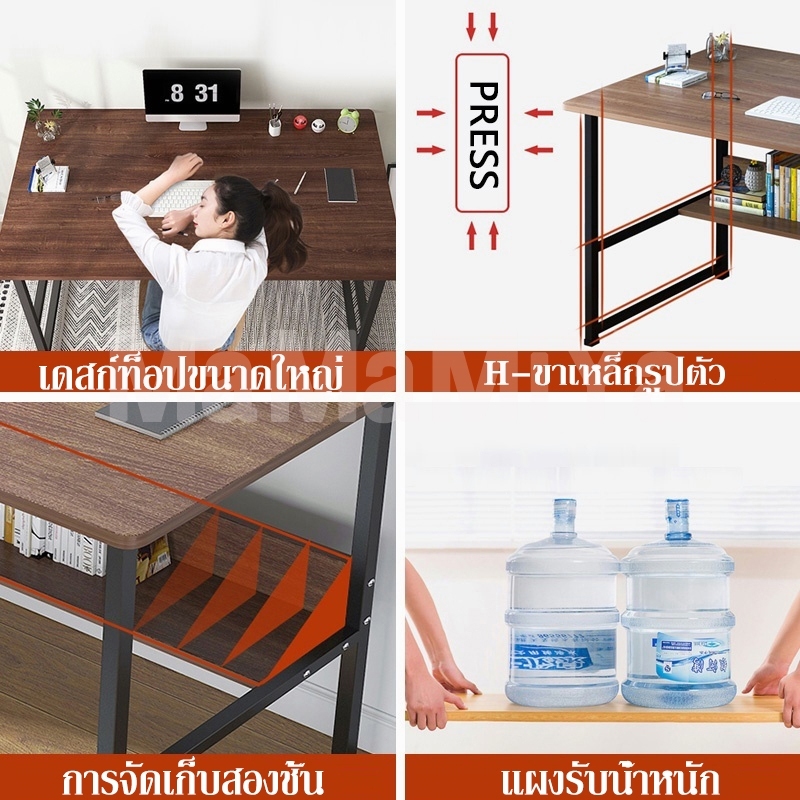 MMY โต๊ะทำงาน ขาเหล็กหนา 120/100/80CM โต๊ะคอม 2ชั้น Computer Desk การออกแบบที่เรียบง่าย ประหยัดพื้นที่
