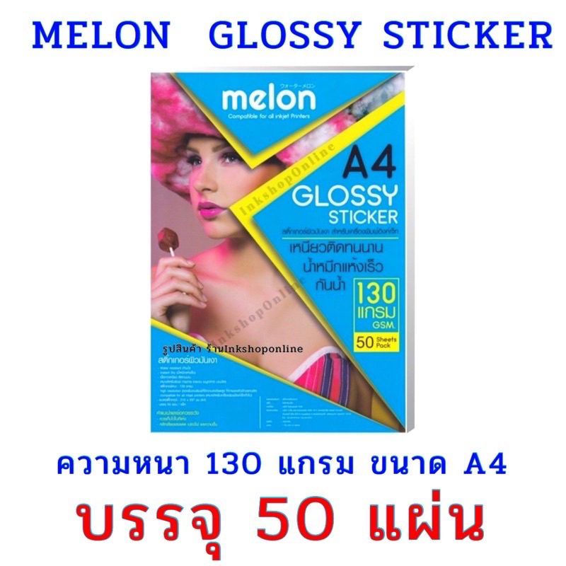 MELON STICKER กระดาษสติ๊กเกอร์ โฟโต้ผิวมันเงา กันน้ำ 130แกรม A4 50แผ่น สำหรับ อิงค์เจ็ท Melon Glossy Photo Sticker Paper