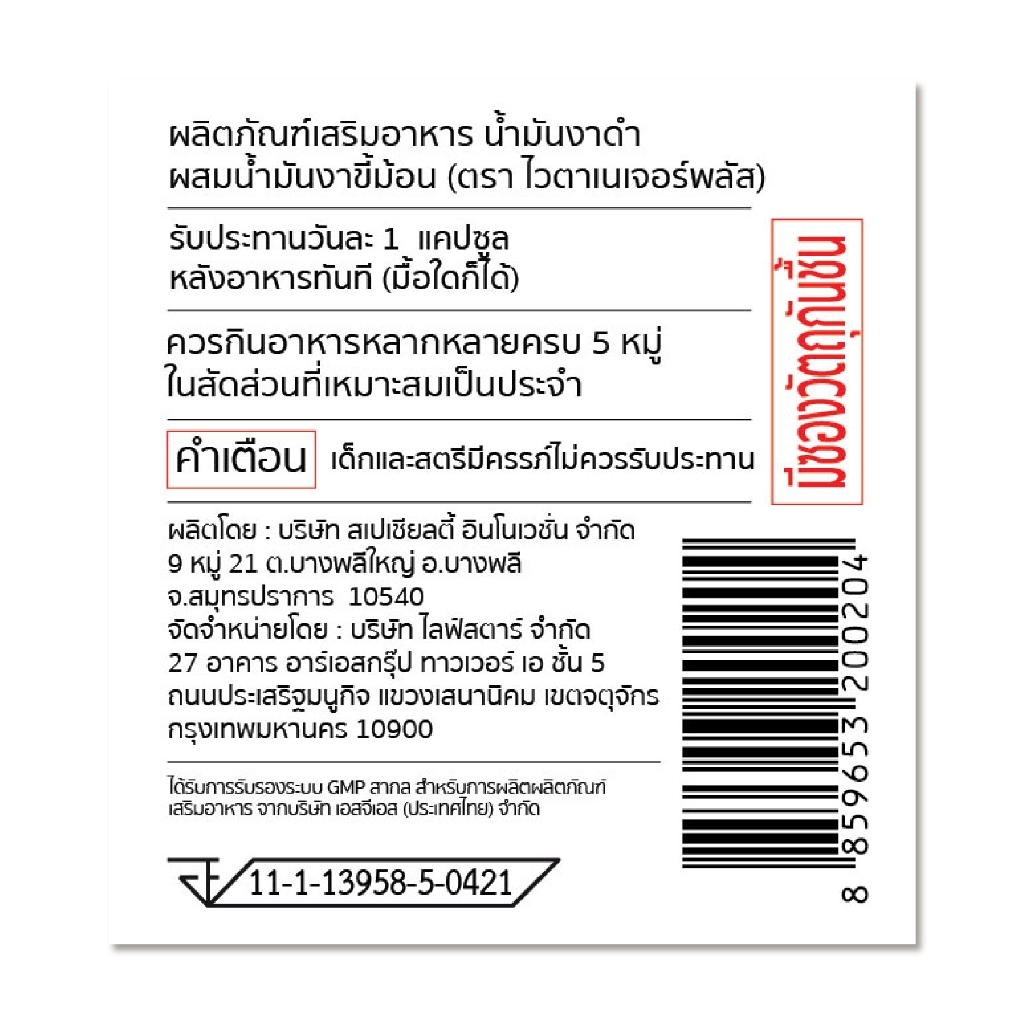 ... หลายคนอาจจะยังไม่รู้ว่า งามีแคลเซียมสูงกว่านม 3 เท่า และยังอุดมไปด้วยกรดไขมันที่จำเป็นต่อร่างกายอีกด้วย นอกจากนี้ ยังมีงานวิจัยระบุว่า สารเซซามินที่พบในงาดำ มีสรรพคุณช่วยยับยั้งการเสื่อมของกระดูก (ต้นเหตุของโรคข้อเสื่อม และกระดูกพรุน) กรดไขมันโอเมก้า 3 มีสรรพคุณช่วยลดการอักเสบและอาการปวดข้อต่อและกระดูก , ลดอาการตึงแน่นหรือข้อยึดในตอนเช้า (อาการที่มักพบบ่อยในผู้ป่วยเรื่องข้ออักเสบ) 2. น้ำมันงาขี้ม้อน ตามตำราแพทย์แผนจีนระบุไว้ว่า น้ำมันงาขี้ม้อน มีสรรพคุณช่วยบำบัดอาการไข้หวัด, ไอ, หอบหืด, แน่นท้อง แน่นหน้าอก แล้วนั้น สารสำคัญในกลุ่ม Polyphenol ยังมีส่วนช่วยต้านการอักเสบ และต้านการแพ้ได้ดี นอกจากนี้ น้ำมันงาขี้ม้อนยังประกอบไปด้วย กรดไขมันไม่อิ่มตัว อาทิ โอเมก้า 3 และ โอเมก้า 6 : ที่ช่วยเรื่องระบบประสาทและความจำ วิตามิน อี : ที่มีอุดมไปด้วยสารต้านอนุมูลอิสระ ช่วยเรื่องการป้องกันระบบประสาท ปอด และกล้ามเนื้อ แคลเซียม และ ฟอสฟอรัส : ที่เพียงพอต่อการซ่อมแซมกระดูกและฟันไม่ให้เปราะหรือแตกง่าย และยังมีส่วนช่วยลดความเสี่ยงโรคกระดูกพรุนในผู้สูงอายุได้ 3. น้ำมันสาหร่าย (Algae Oil) จากสาหร่ายทะเล Schizochytrium sp. ซึ่งเป็นสาหร่ายทะเลขนาดเล็ก (microalgae) อุดมไปด้วยแคลเซียม ธาตุเหล็ก ไฟเบอร์ โฟเลต แมกนีเซียม และ DHA ซึ่งมีส่วนช่วยบำรุงสายตา และการทำงานของระบบประสาท นอกจากนี้ ในน้ำมันสาหร่ายยังมีสาร ที่มีประโยชน์ต่อร่างกาย เช่น สารฟูคอยแดน (Fucoidan) ที่มีฤทธิ์ต้านการอักเสบ สารโพลีแซคคาไรด์ (Polysaccharides) ช่วยเสริมสร้างภูมิคุ้มกัน ช่วยลดระดับน้ำตาลในเลือด สารฟิวโคแซนธิน (Fucoxanthin) ช่วยลดเร่งการเผาผลาญ ด้วยการสลายกรดไขมัน และเพิ่มพลังงานแก่ร่างกาย ผู้สูงอายุ 40-60 ปี ที่มีปัญหาข้อเข่า ผู้ที่ต้องการสารอาหารที่จำเป็นต่อการบำรุงกระดูก และข้อเข่า ผู้ที่แพ้อาหาร ทะเล และ นม แต่ต้องการสารอาหารที่จำเป็นต่อร่างกาย เช่น ไขมันดี และ แคลเซียม Vitanature+ (ไวตาเนเจอร์พลัส) น้ำมันงาดำ ผสมน้ำมันงาขี้ม้อน 1 แคปซูล ประกอบไปด้วย น้ำมันงาดำ (Black Sesame oil) : 500.00มก. น้ำมันงาขี้ม้อน (Perilla oil) 20.00มก. น้ำมันสาหร่าย (Algae oil ) 10.00มก. รับประทานวันละ 1 เม็ด หลังมื้ออาหาร (มื้อใดก็ได้) 2 ปี (นับจากวันผลิตสินค้า) ควรเก็บในอุณหภูมิห้อง หลีกเลี่ยงการเก็บในที่ชื้น หรือ ที่มีแสงแดด หากมีโรคประจำตัวควรปรึกษาแพทย์ก่อนรับประทาน เด็กและสตรีมีครรภ์ไม่ควรรับประทาน เป็นเพียงผลิตภัณฑ์เสริมอาหาร ไม่มีส่วนในการป้องกันหรือรักษาโรค Certificate of GMP จาก SGS (Thailand) Ltd. เลขที่ อย. 11-1-13958-5-0421
