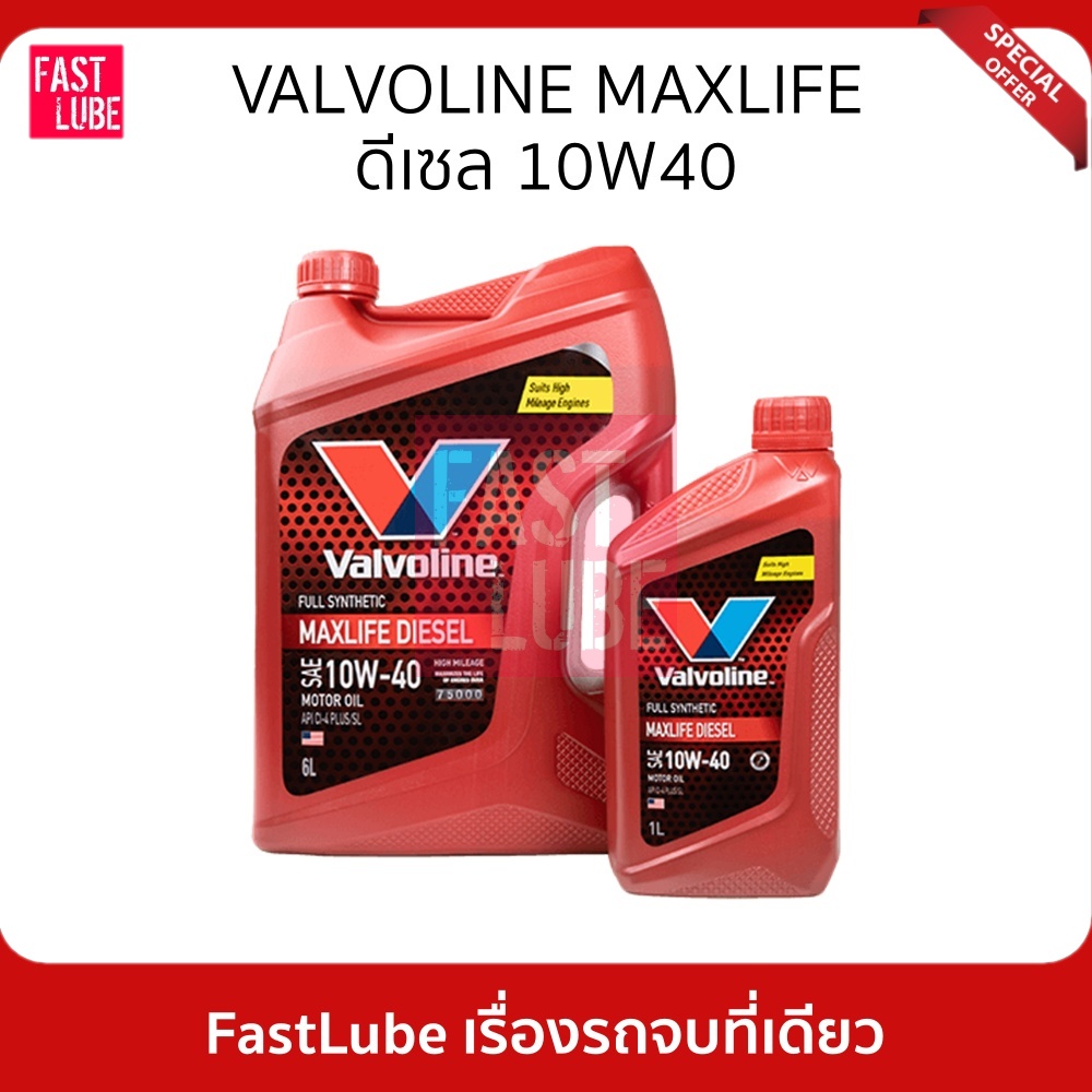 น้ำมันเครื่อง ดีเซล VALVOLINE MAXLIFE DIESEL FULLY SYNTHETIC 10W40 แมกซ์ไลฟ์ ดีเซล ฟูลลี่ ซินเธติค น้ำมันเครื่องสังเคราะห์คุณภาพสูง ออกแบบเฉพาะสำหรับเครื่องยนต์ดีเซลที่ผ่านการใช้งานเกินกว่า 75,000 กม. ผลิตจากน้ำมันหล่อลื่นพื้นฐานคุณภาพสูง ผสมสารเพิ่มคุณภาพ Multi-life™ Additives ลิขสิทธิ์เฉพาะของว