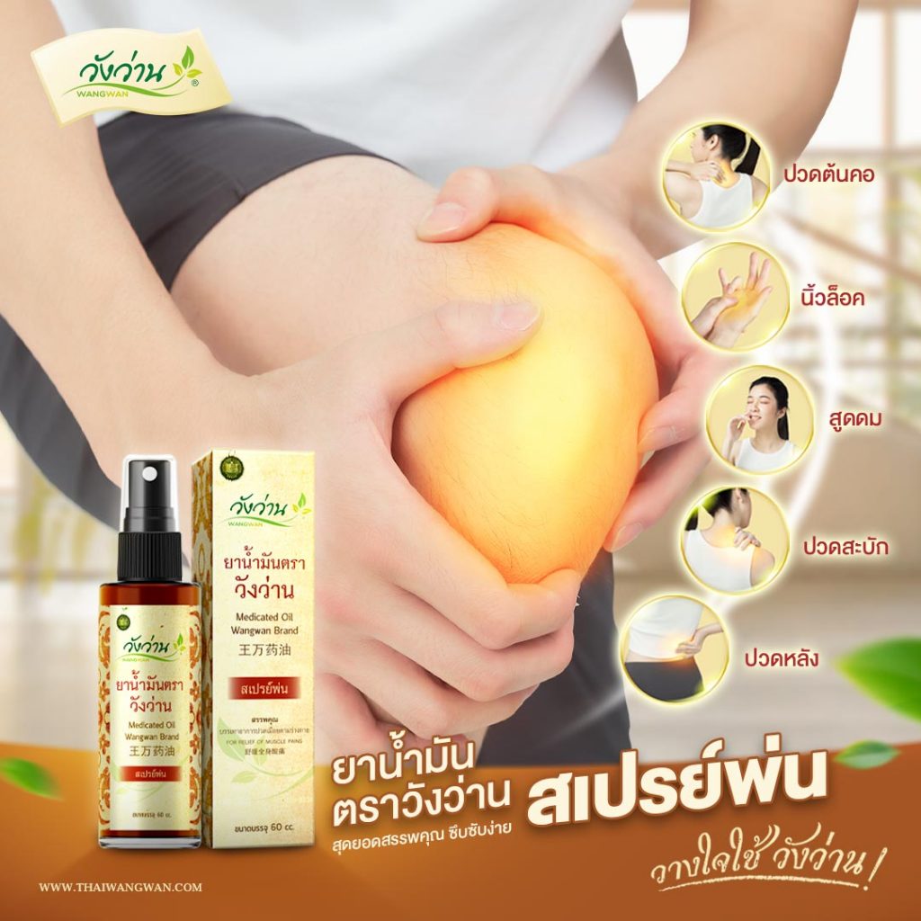 ยาน้ำมันตราวังว่าน สูตรคลาสสิค Medicated oil Wangwan brand ขนาด 60 cc วิธีใช้ : ใช้ทาบริเวณที่มีอาการ เลขทะเบียน อย. G843/59 ลักษณะผลิตภัณฑ์ : ยาน้ำมัน จะมีสีน้ำตาล อายุการเก็บรักษา 2 ปี ซึมง่าย ไม่เหนียวเหนอะหนะไม่ทิ้งคราบฟิลม์บนผิว ผลิตจากวัตถุดิบคุณภาพสูง อัดแน่นไปด้วยน้ำมันไพลเ